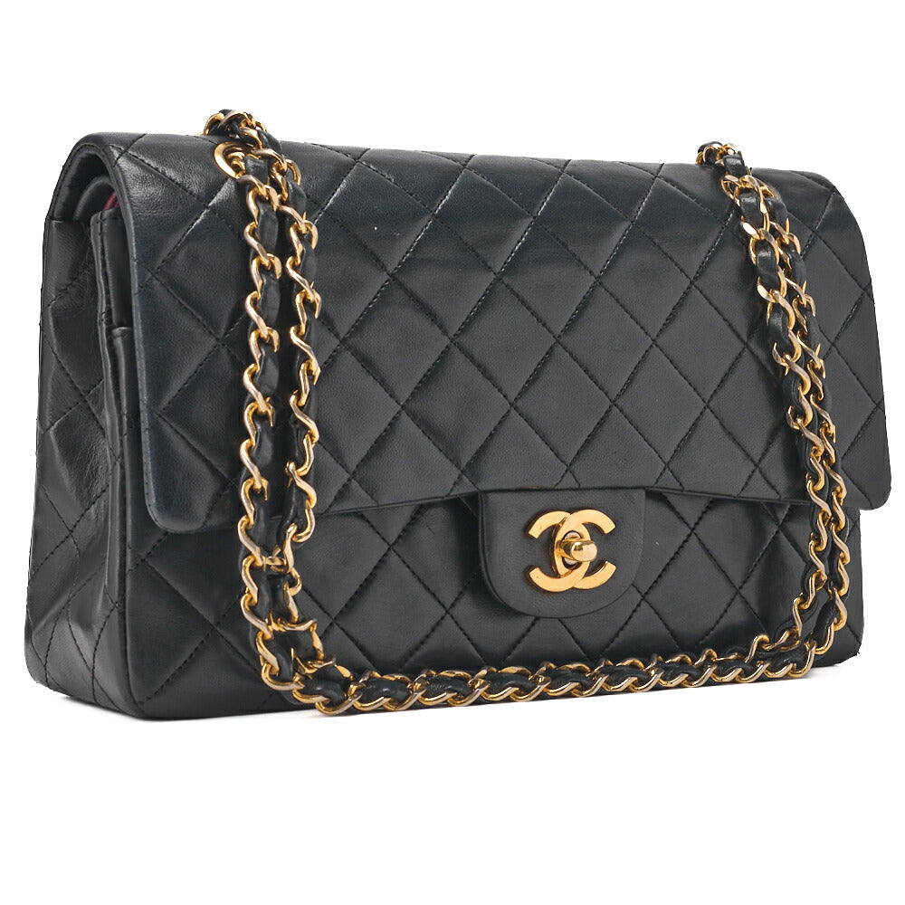 Pre-Owned Kette Schultertasche Matelassé Doppelklappe Lammleder Schwarz Goldfarbene Hardware Pre-Owned