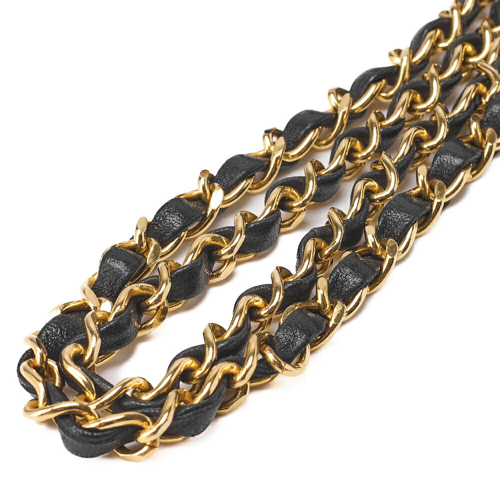 • Premium materials: lambskin leather in classic black with gold-tone hardware.