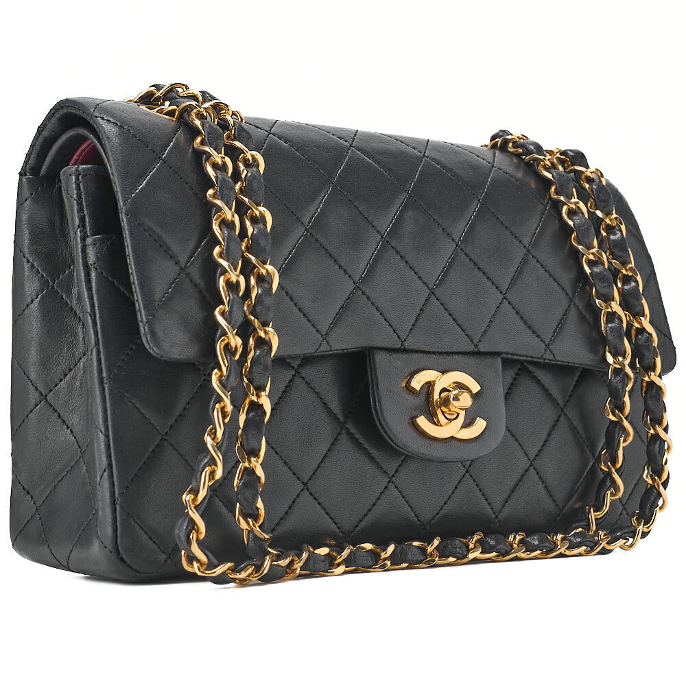 Pre-Owned Chain Shoulder Bag Matelassé Double Flap 23cm Lambskin Black Gold-Tone Hardware, Pre-Owned