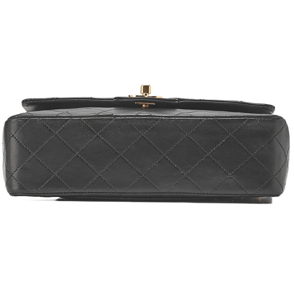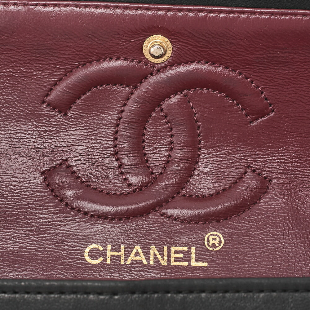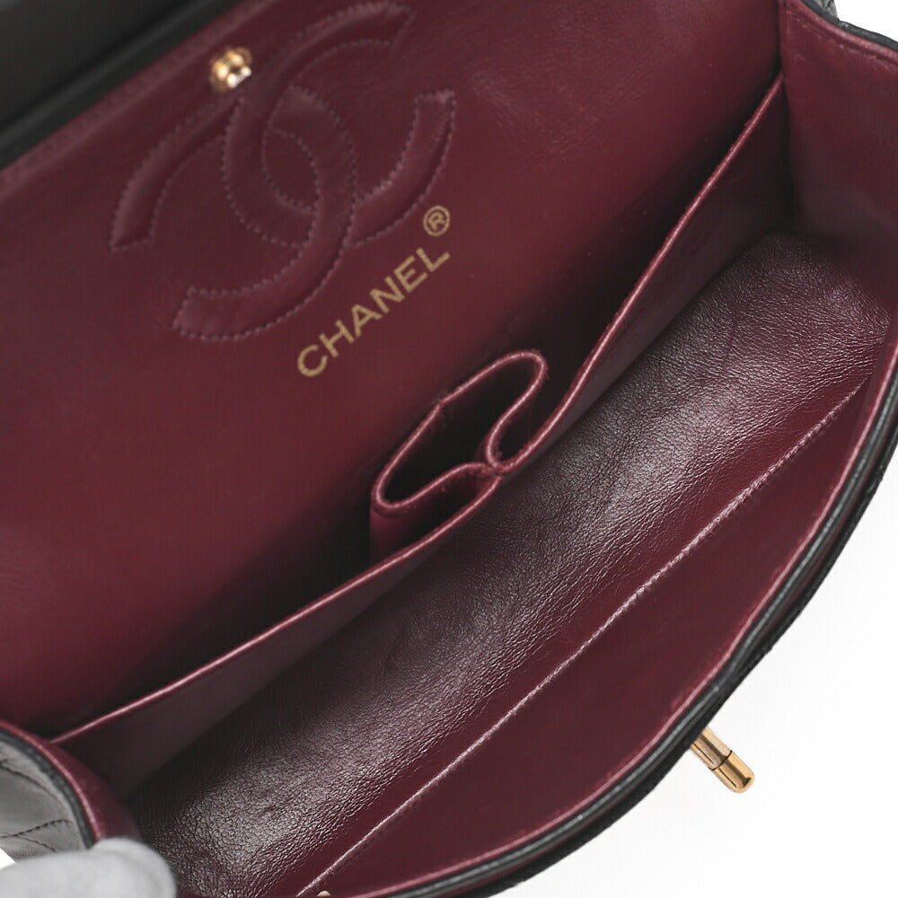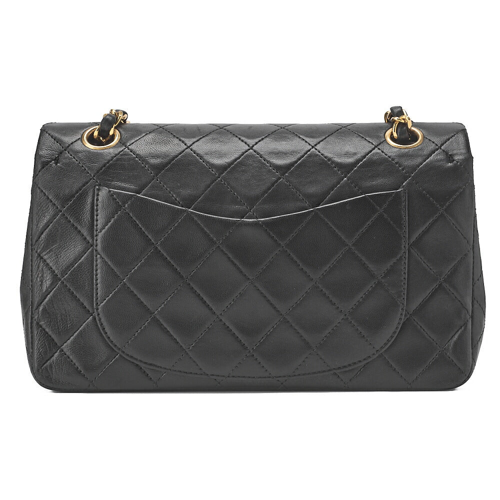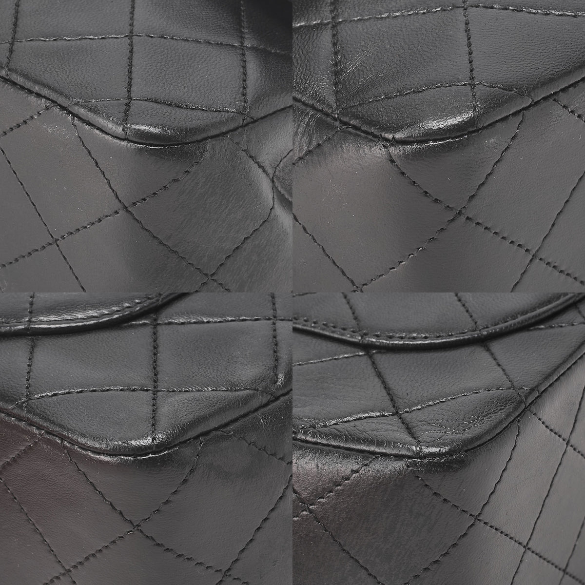 - Brand & Style: CHANEL Chain Shoulder Bag Matelassé Double Flap, black lambskin with gold-tone hardware.