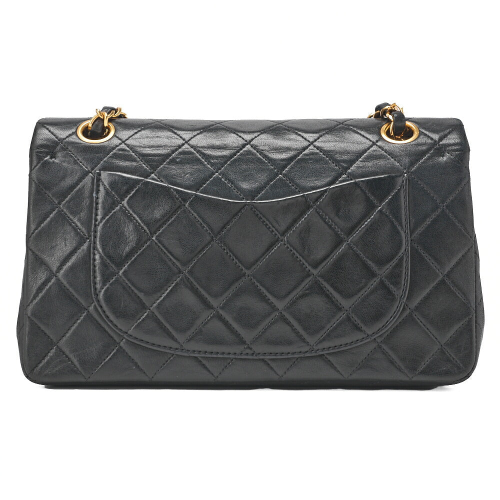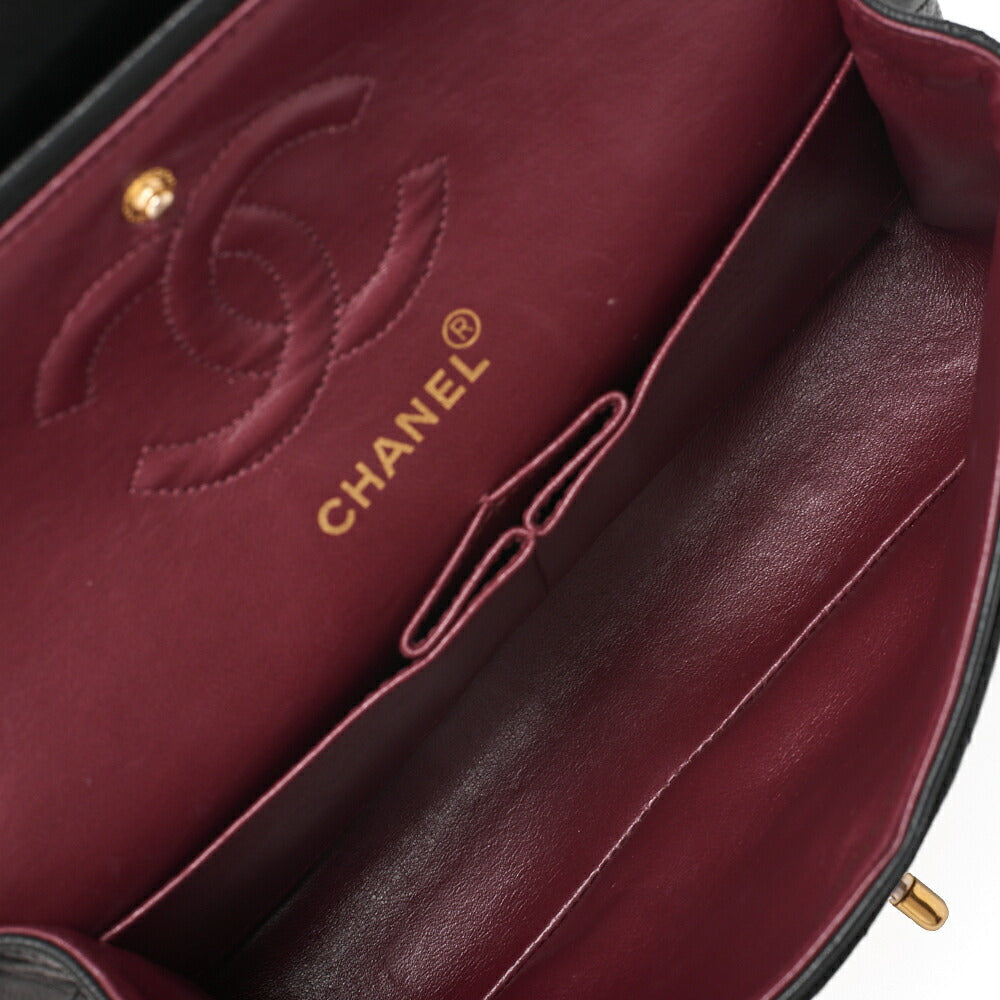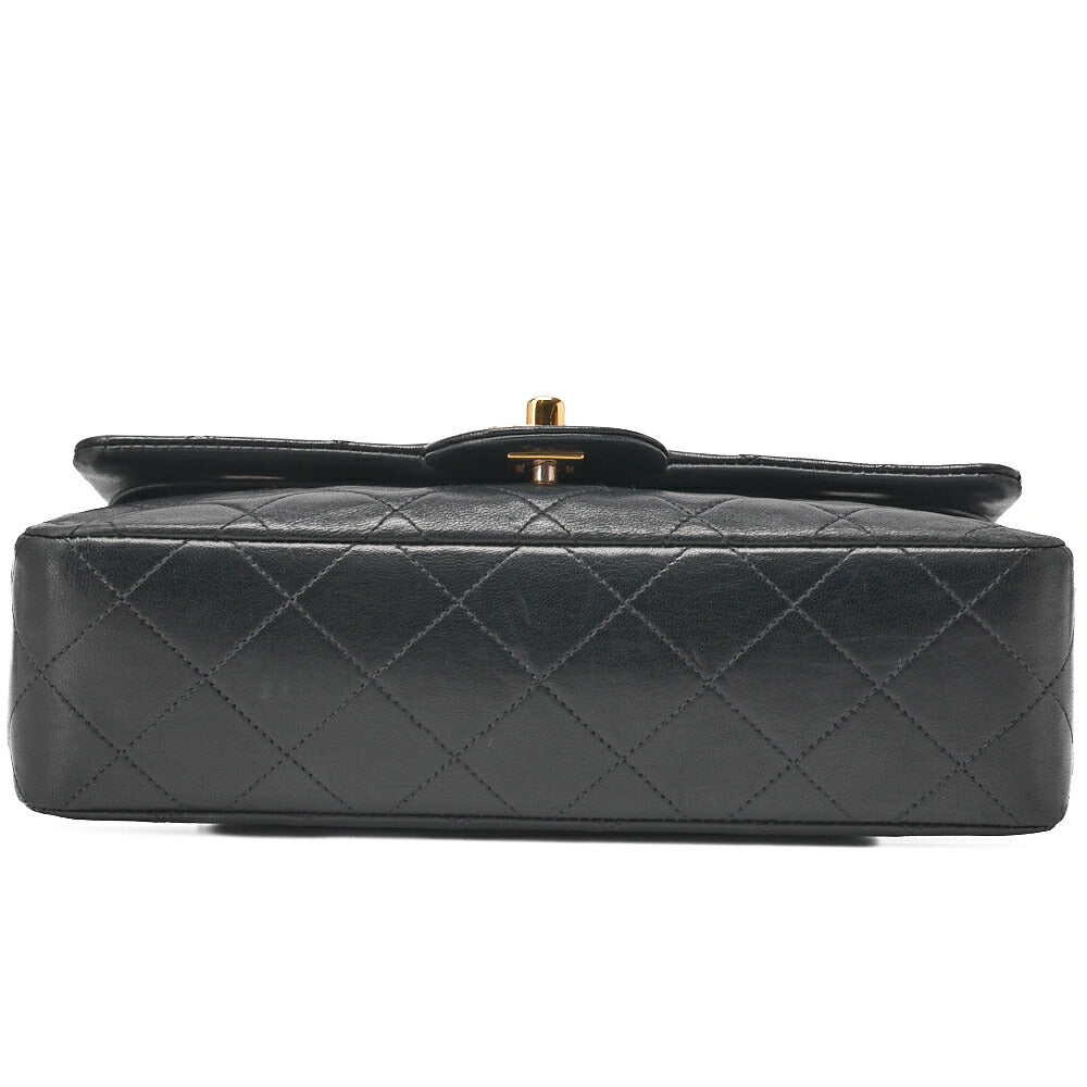 Pre-Owned Kette Schultertasche Matlasse Doppelklappe 23cm Lammleder Schwarz Goldfarbene Hardware, Pre-Owned