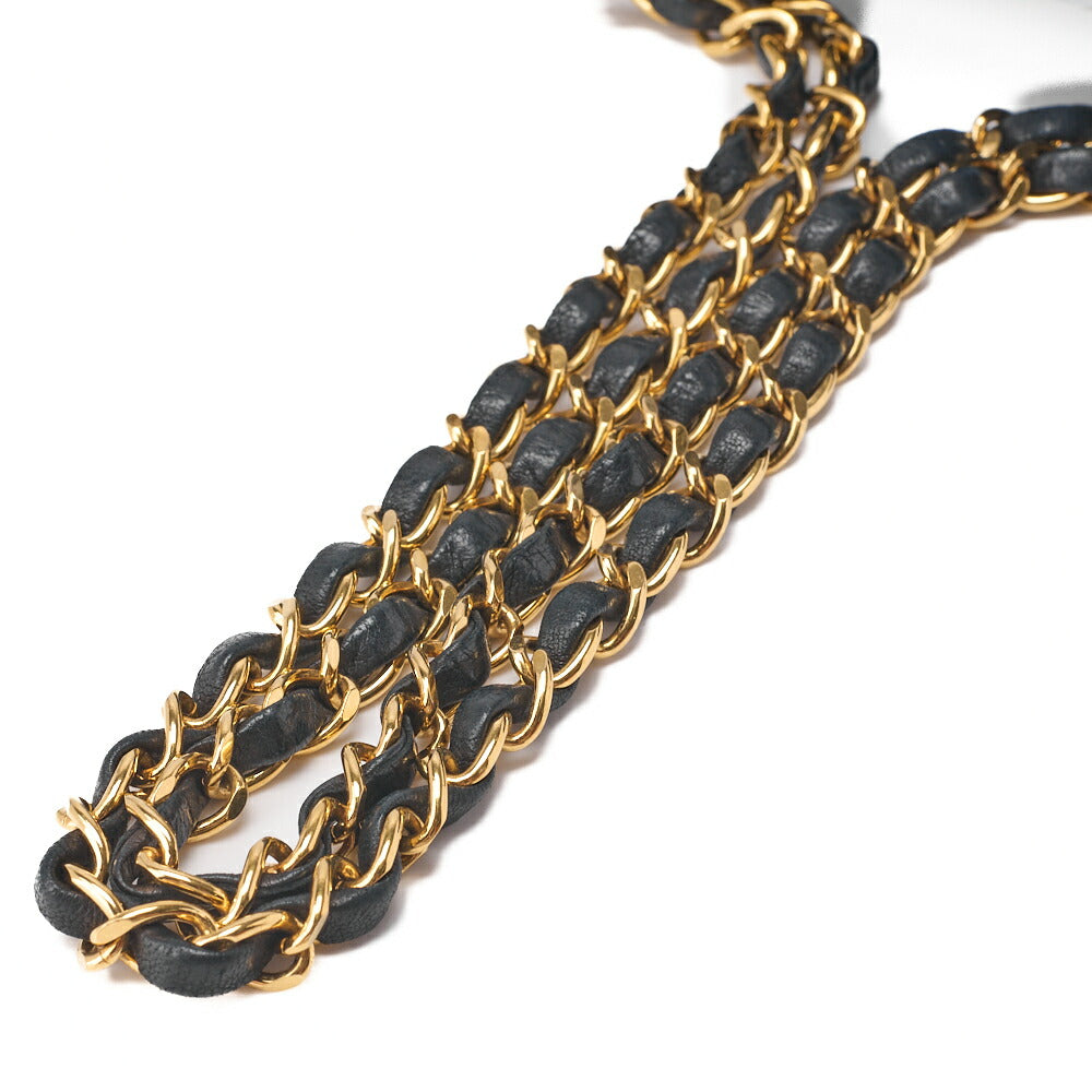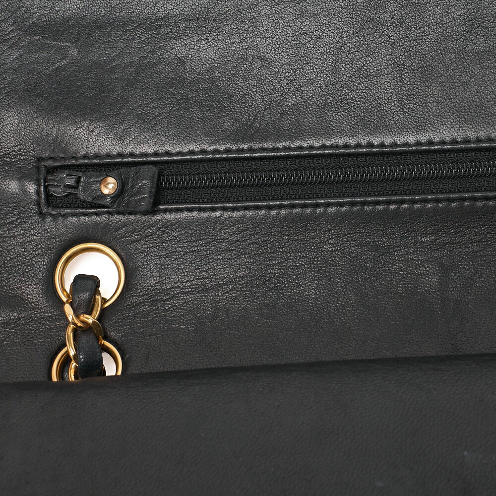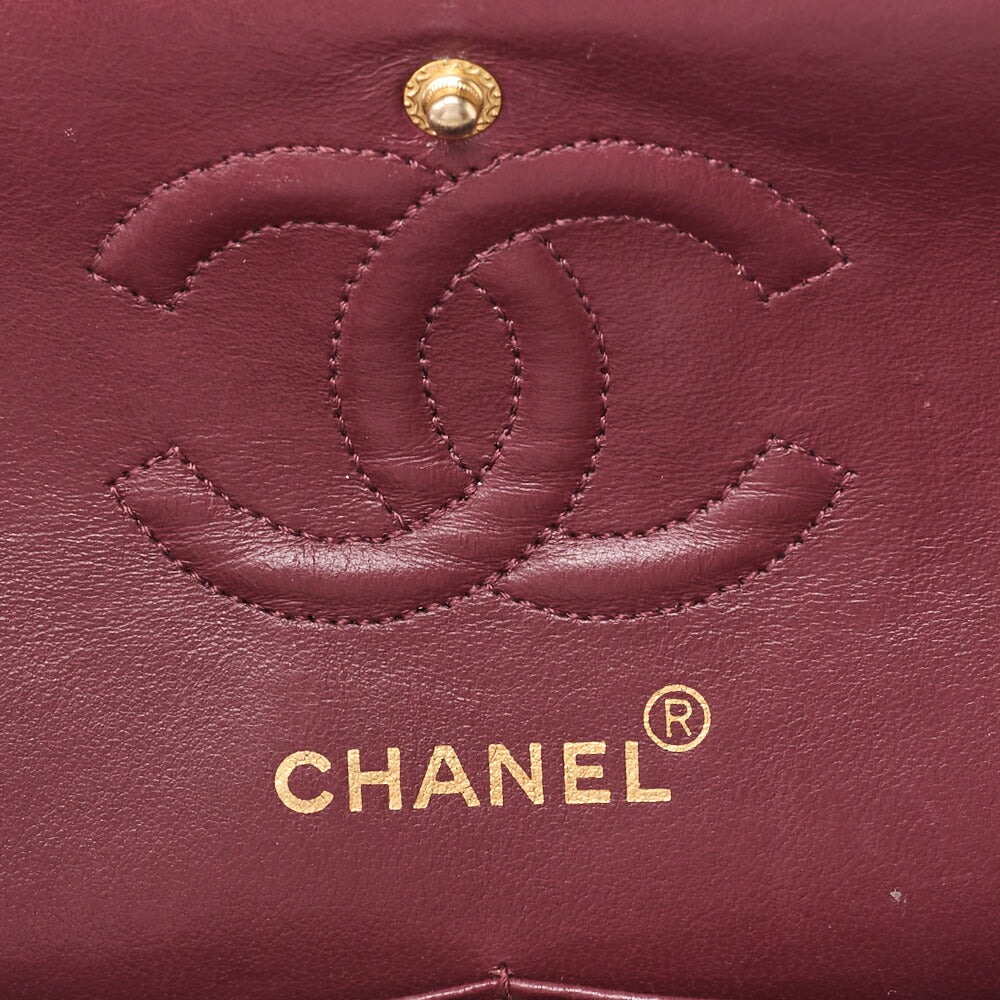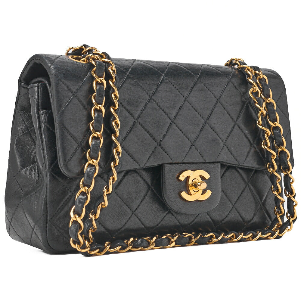 Pre-Owned Kette Schultertasche Matlasse Doppelklappe 23cm Lammleder Schwarz Goldfarbene Hardware, Pre-Owned