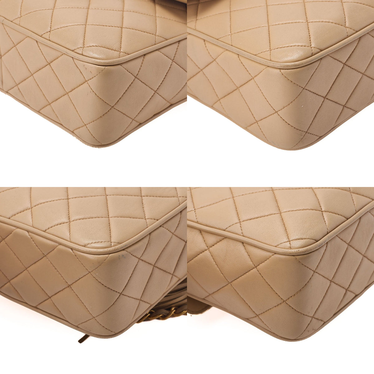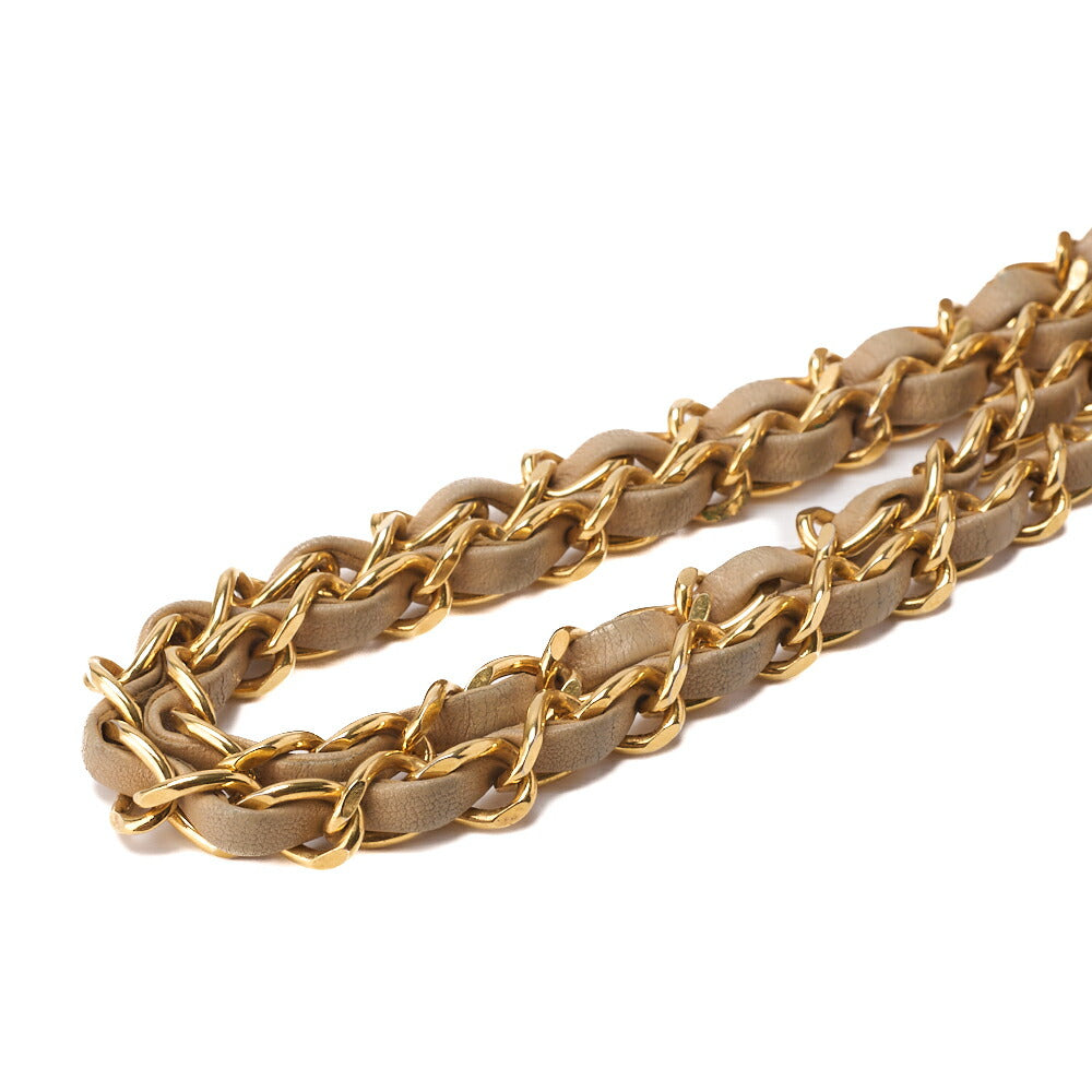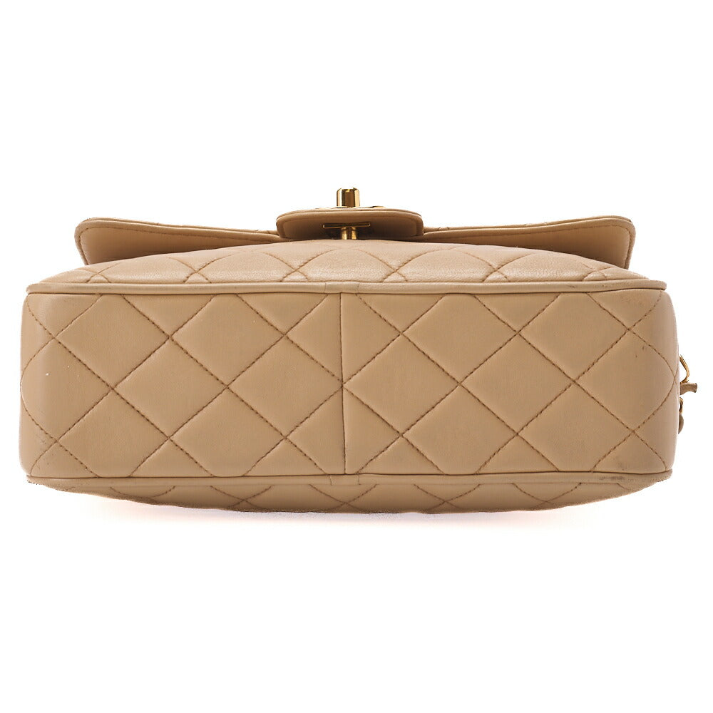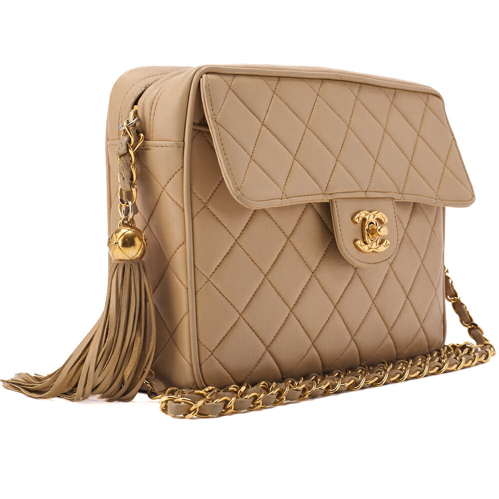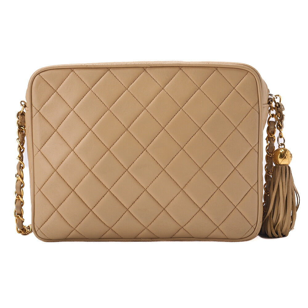 Pre-Owned Chain Shoulder Bag Matelassé Outside Flap Fringe Chain Shoulder Lambskin Beige Gold-Tone Hardware, Pre-Owned