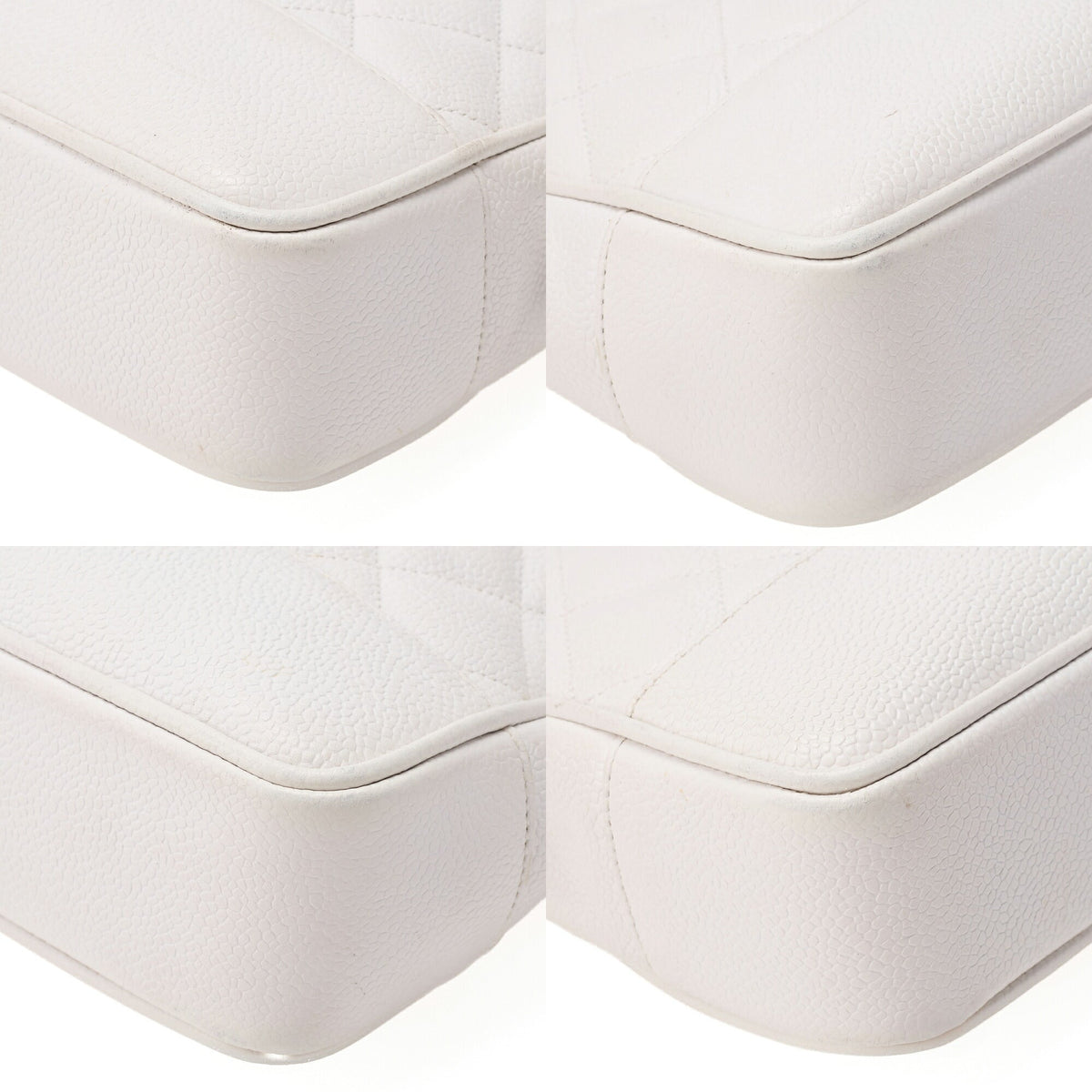 Pre-Owned Chain Shoulder Bag Matelassé Ball Charm Caviar Skin White Gold-Tone Hardware, Pre-Owned