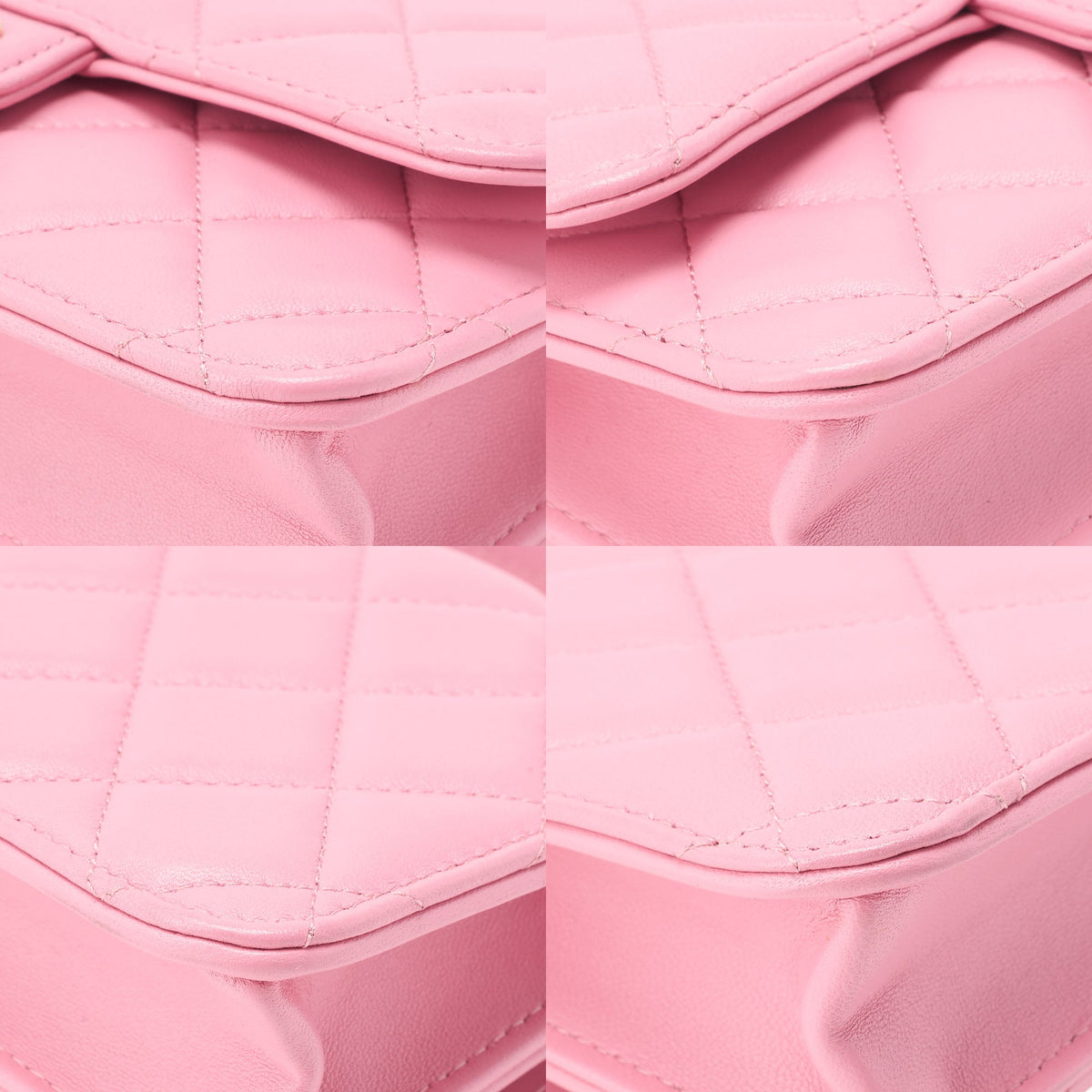 Pre-Owned Chain Shoulder Bag Mini Matelasse Push Lock Lammleder Pink Gold-Tone Hardware Pre-Owned