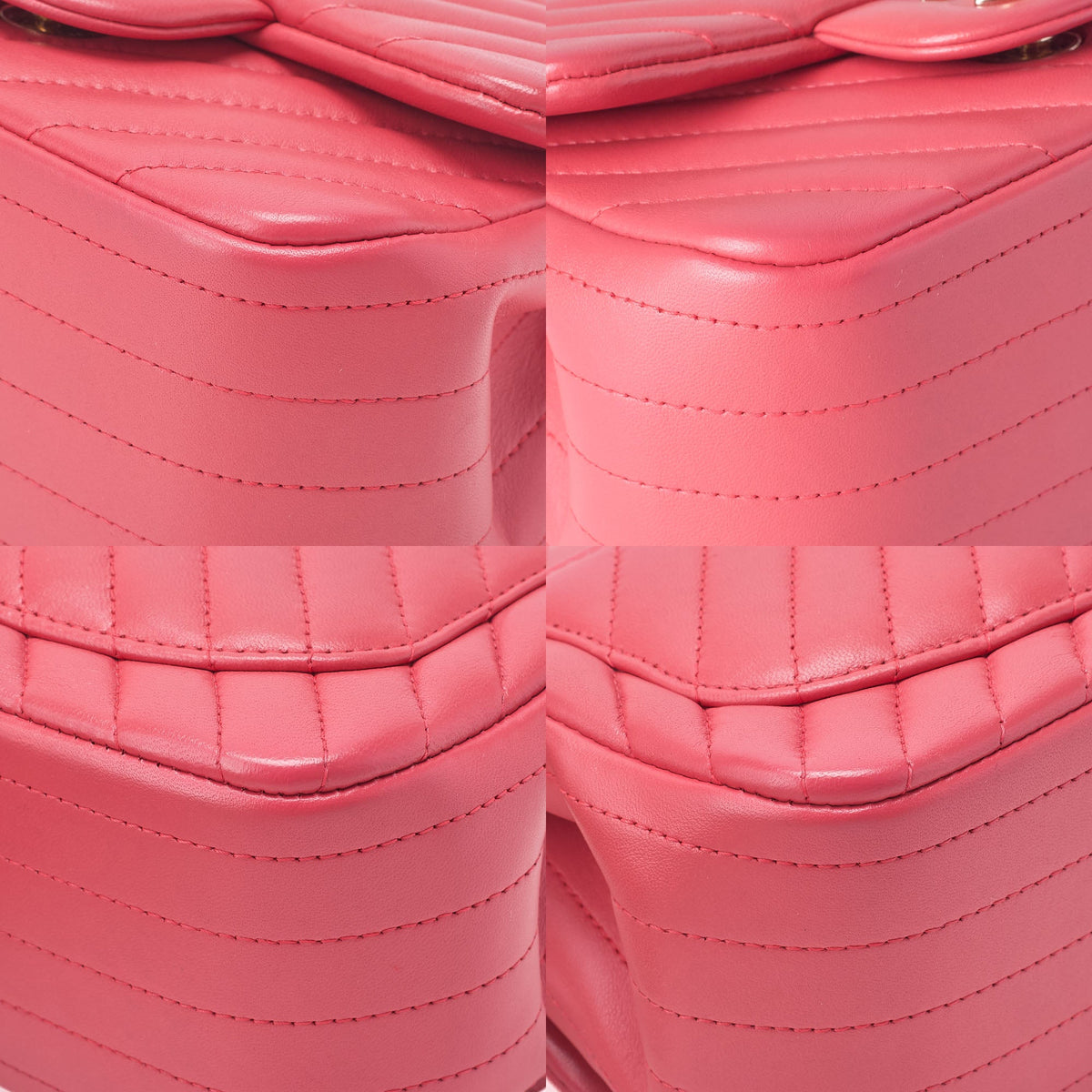 Pre-Owned Chain Shoulder Bag Mini Matrasse 17cm Lambskin V-Stitch Red Single Flap Turnlock Gold-Tone Hardware, Pre-Owned