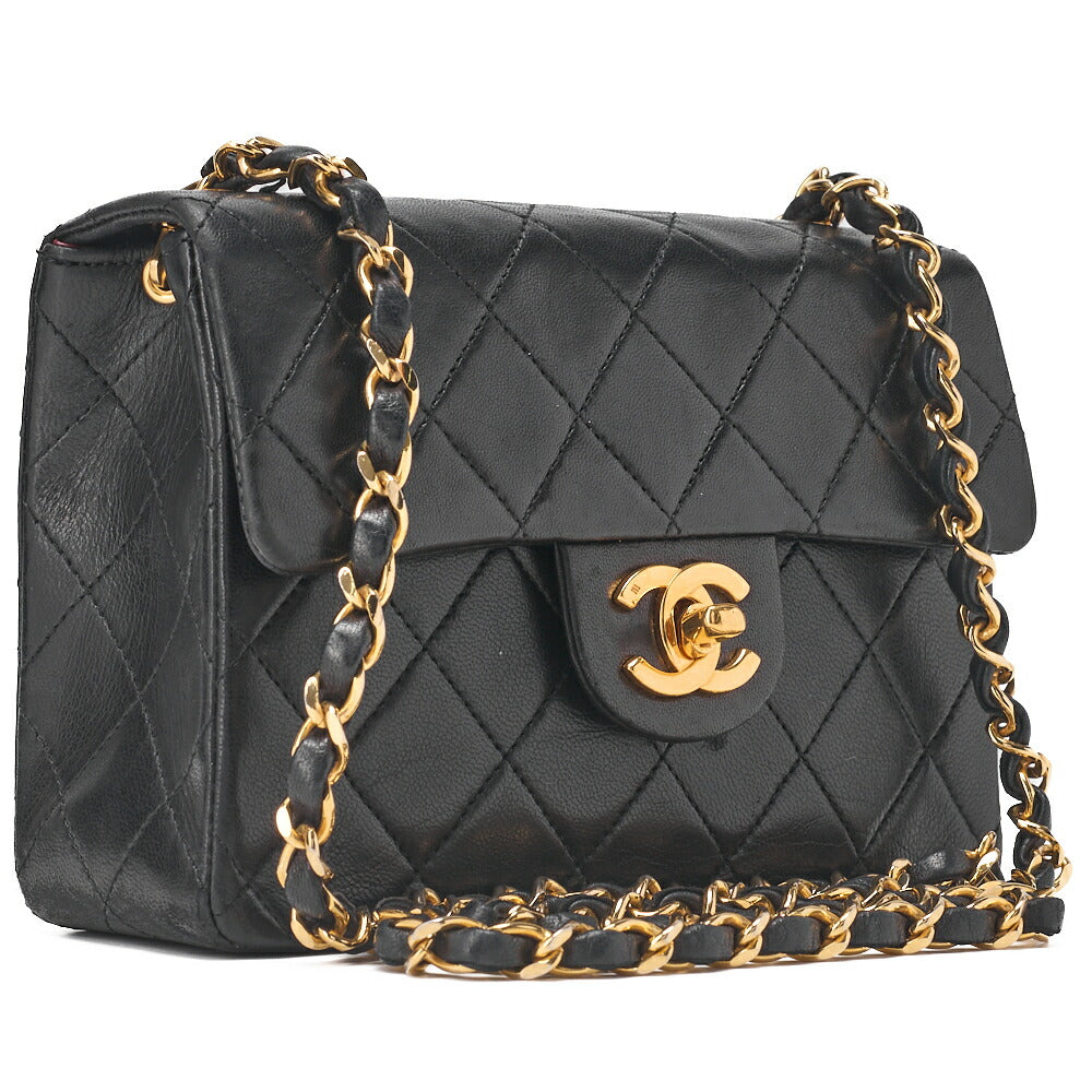 Pre-Owned Kette Schultertasche Mini Matrasse 18cm Lammleder Schwarz Single Flap Turnlock Gold-Ton Hardware, Pre-Owned