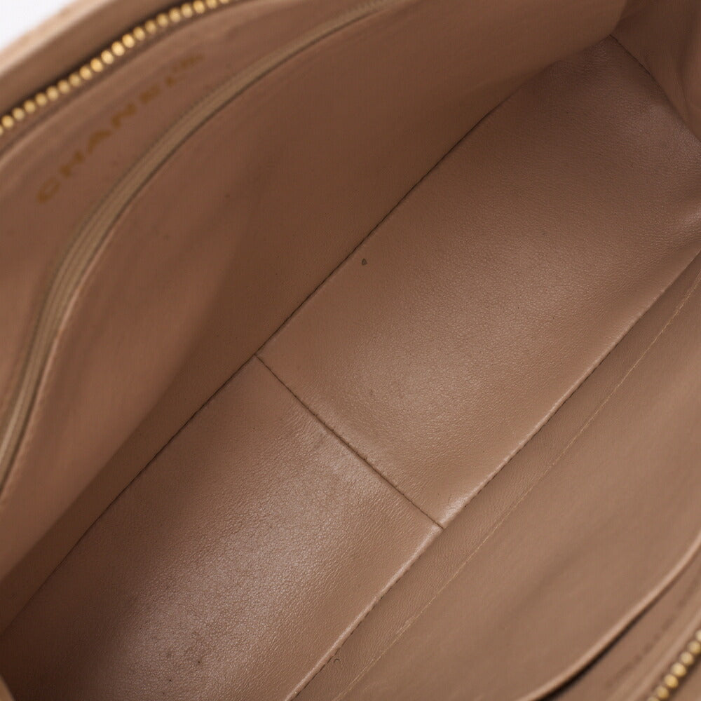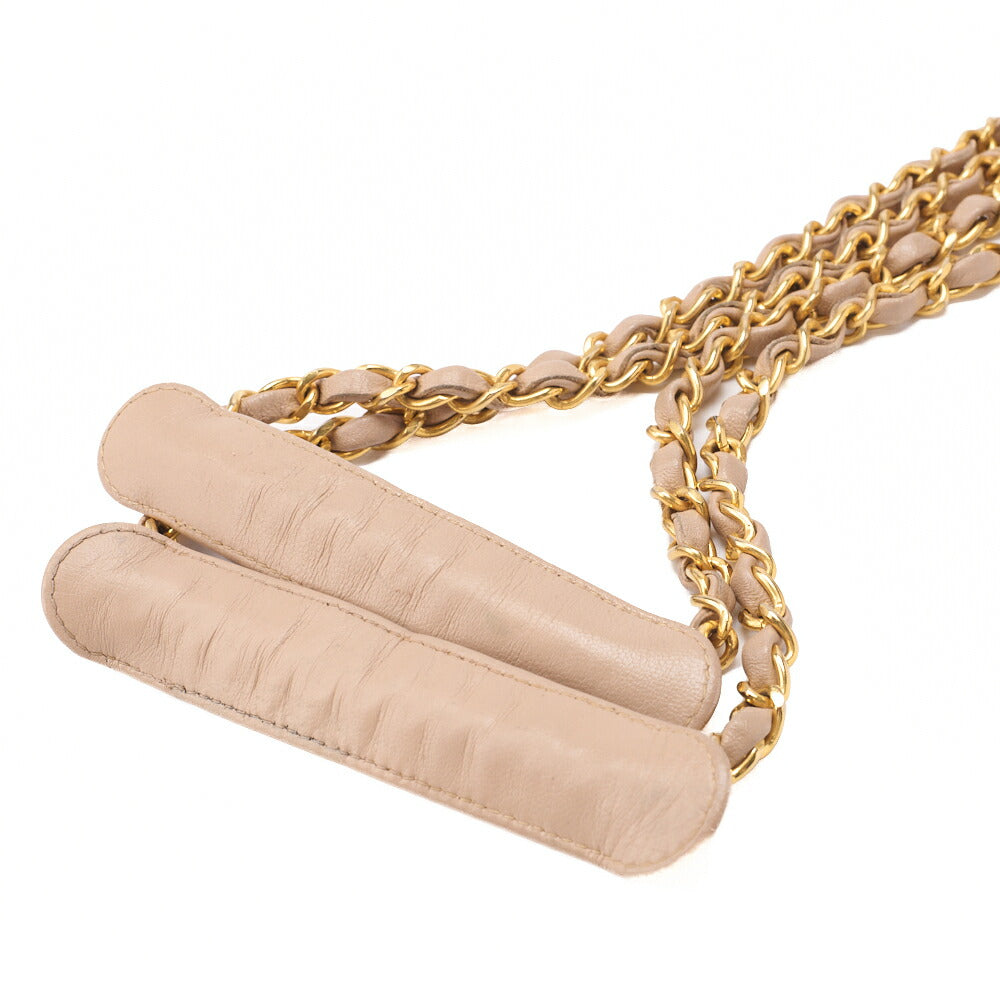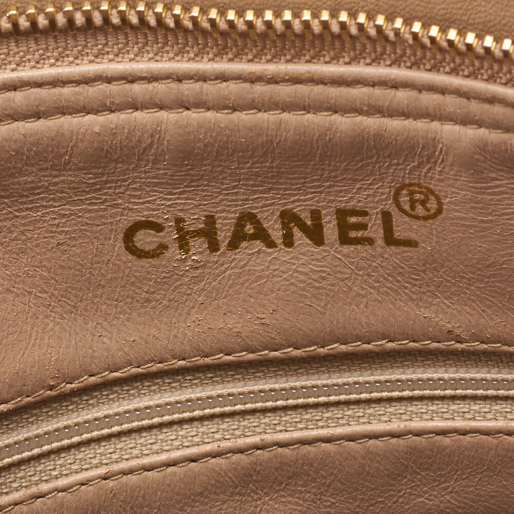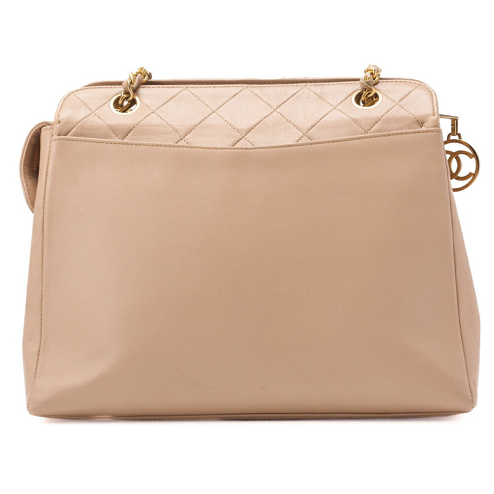 Pre-Owned Chain Shoulder Bag Outside Flap Circle Coco Charm Lambskin Beige Gold-Tone Hardware, Pre-Owned