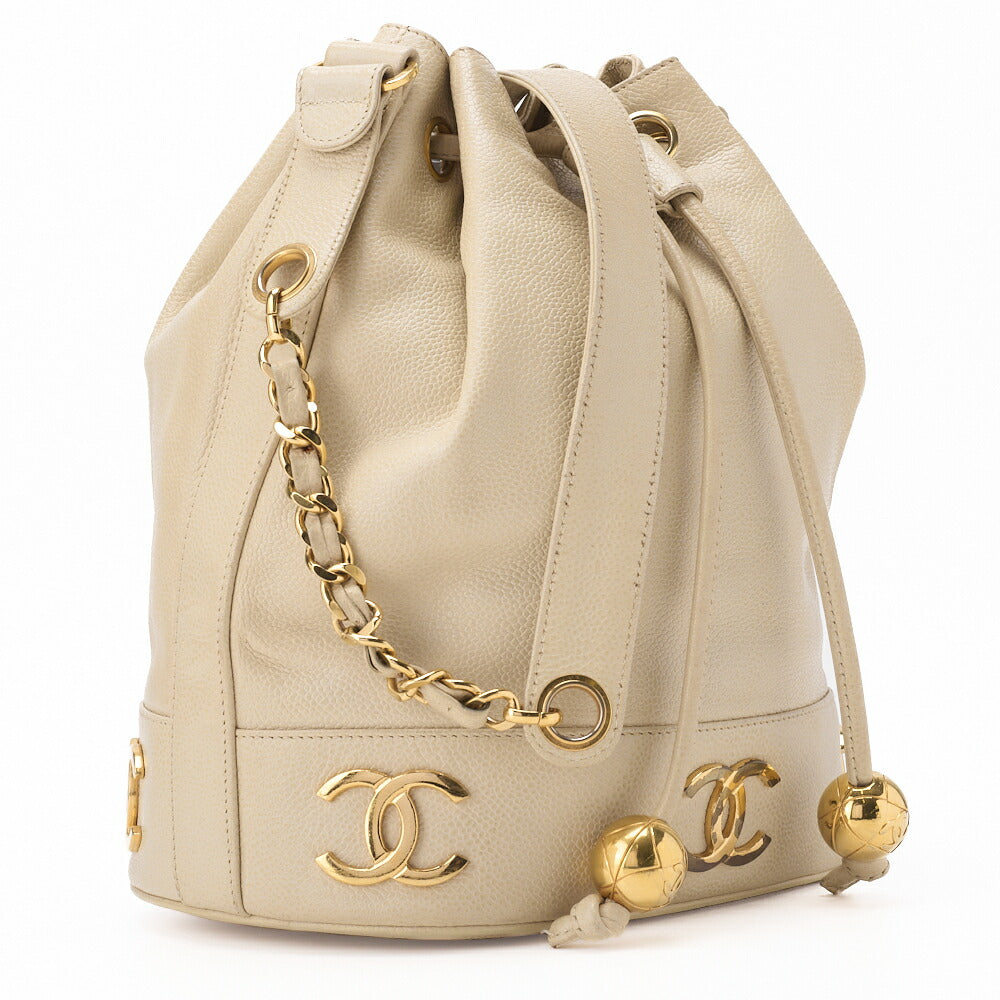 Veredeln Sie Ihren Stil mit der exquisiten CHANEL Chain Shoulder Bag Caviar Skin Triple Coco Drawstring Ball Charm in edlem Elfenbeinton, verziert mit luxuriösen Goldbeschlägen. Dieses atemberaubende Accessoire ist nicht nur eine Tasche; es ist ein Statement-Piece, das Eleganz und Individualität ausstrahlt.
