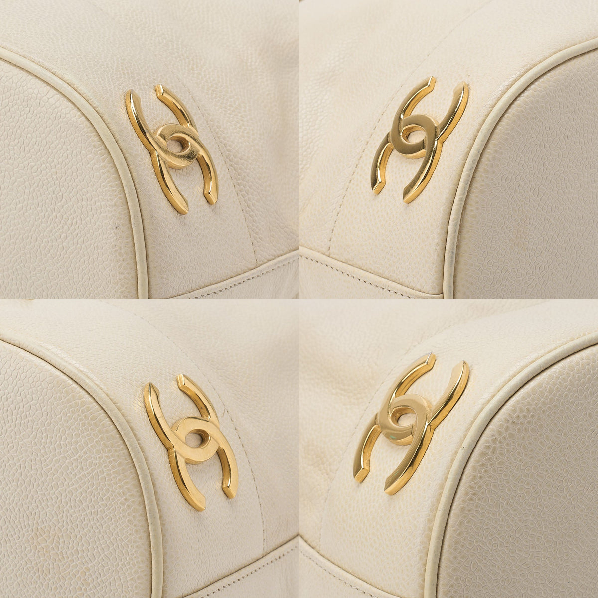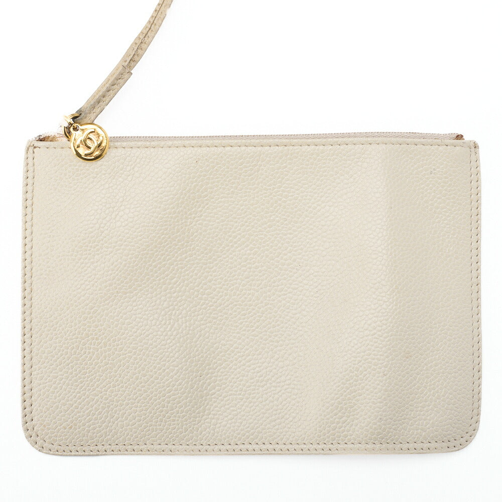 Pre-Owned Chain Shoulder Bag, Triple Coco, Caviar Skin, Elfenbein, Goldfarbene Metallteile, Pre-Owned