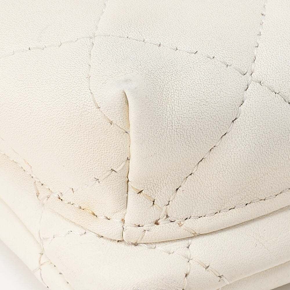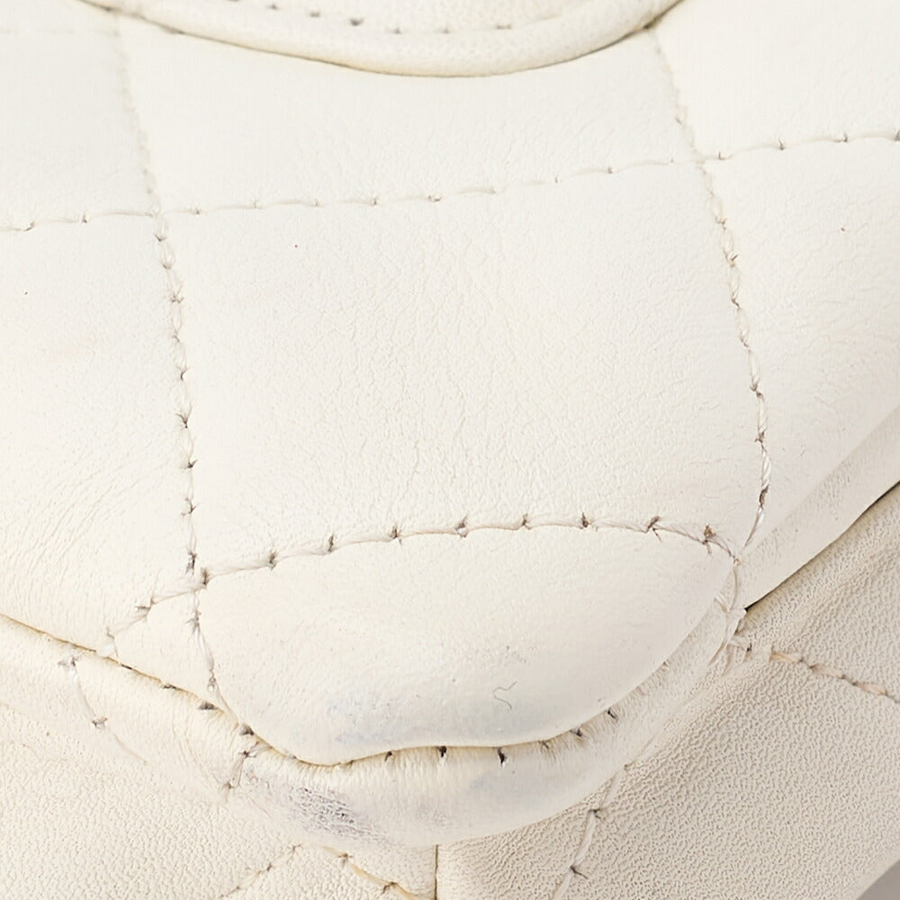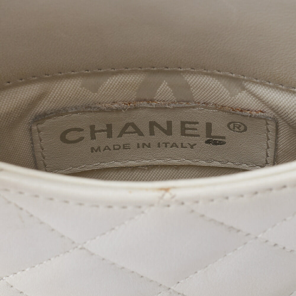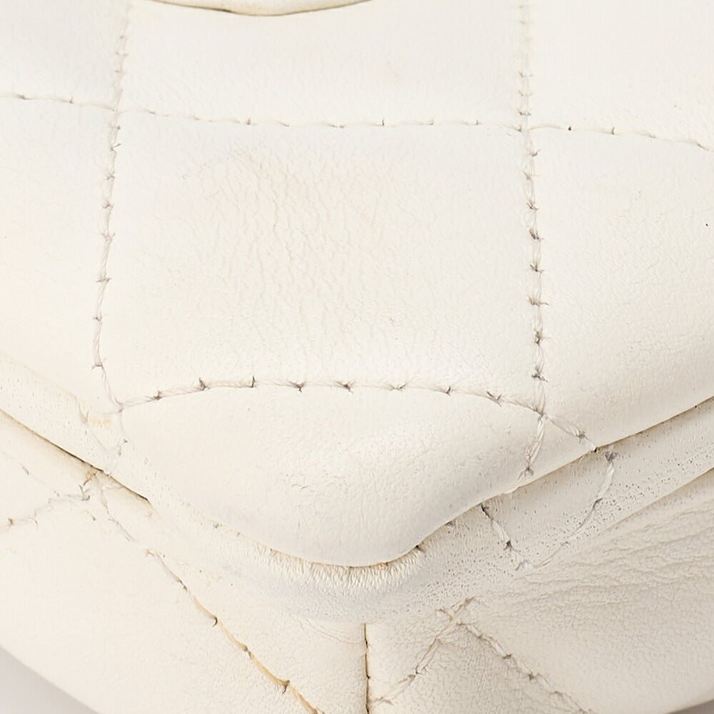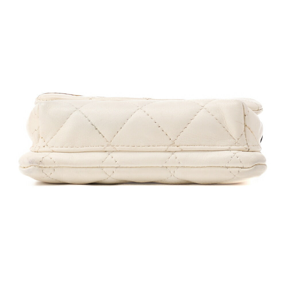 Gebrauchte Umhängetasche, Kettenschulter, Matelassé, Kalbsleder, Weiß, Goldfarbene Hardware, Gebraucht