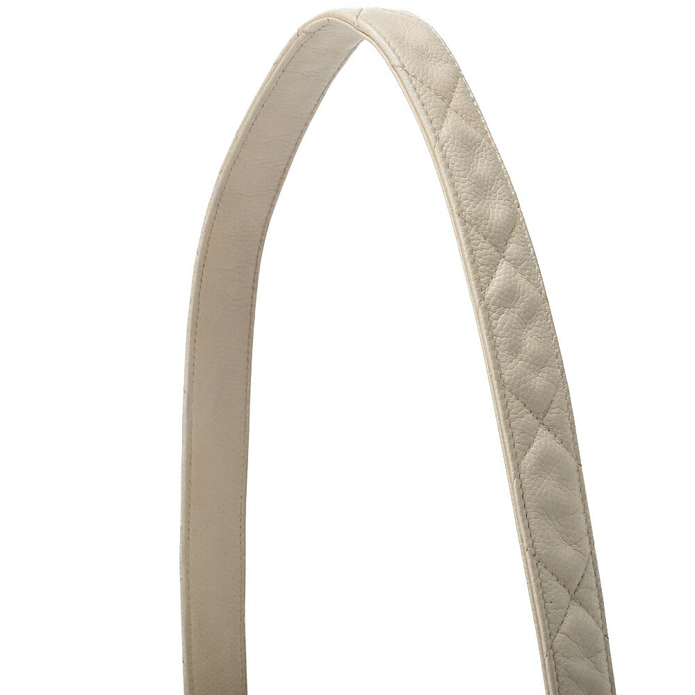 Gebrauchte Umhängetasche, Kettenschulter, Matelassé, Kaviarhaut, Elfenbein, goldfarbene Metallteile, gebraucht