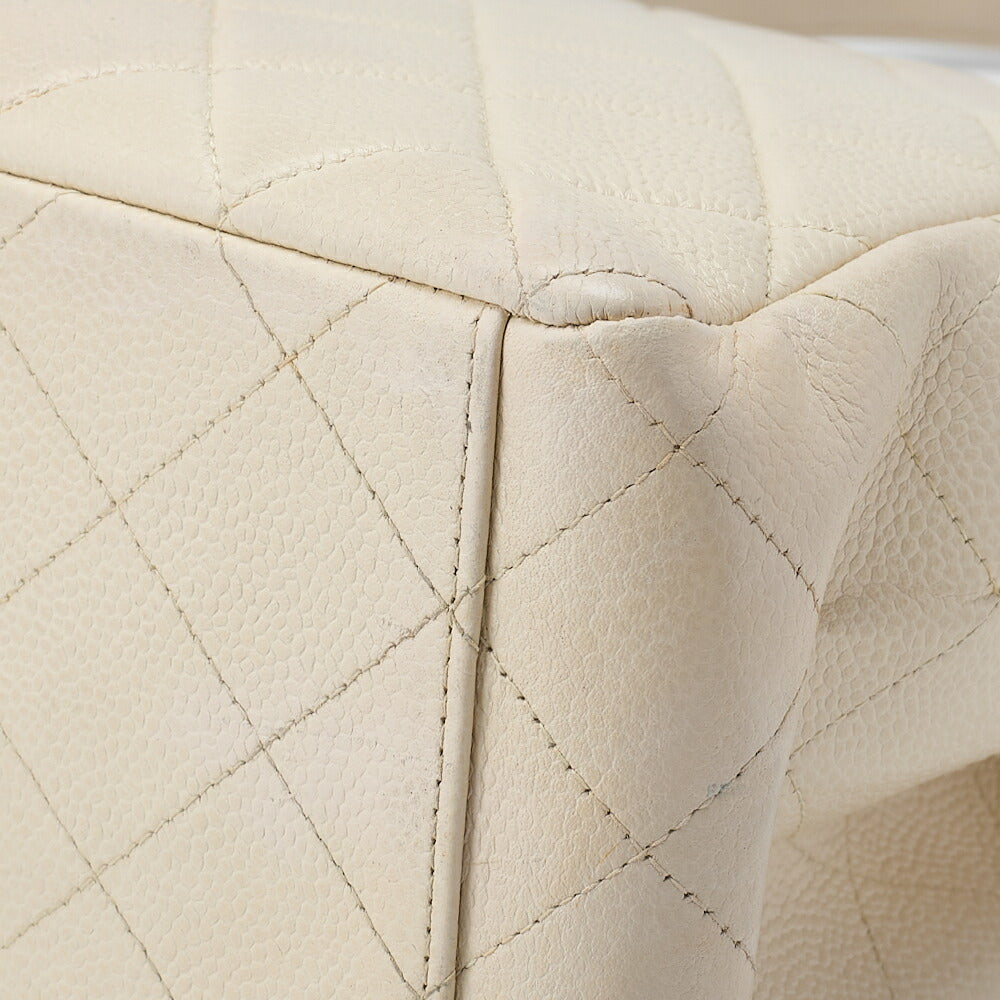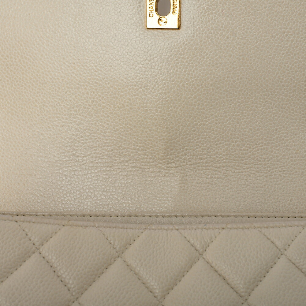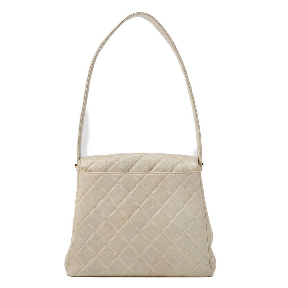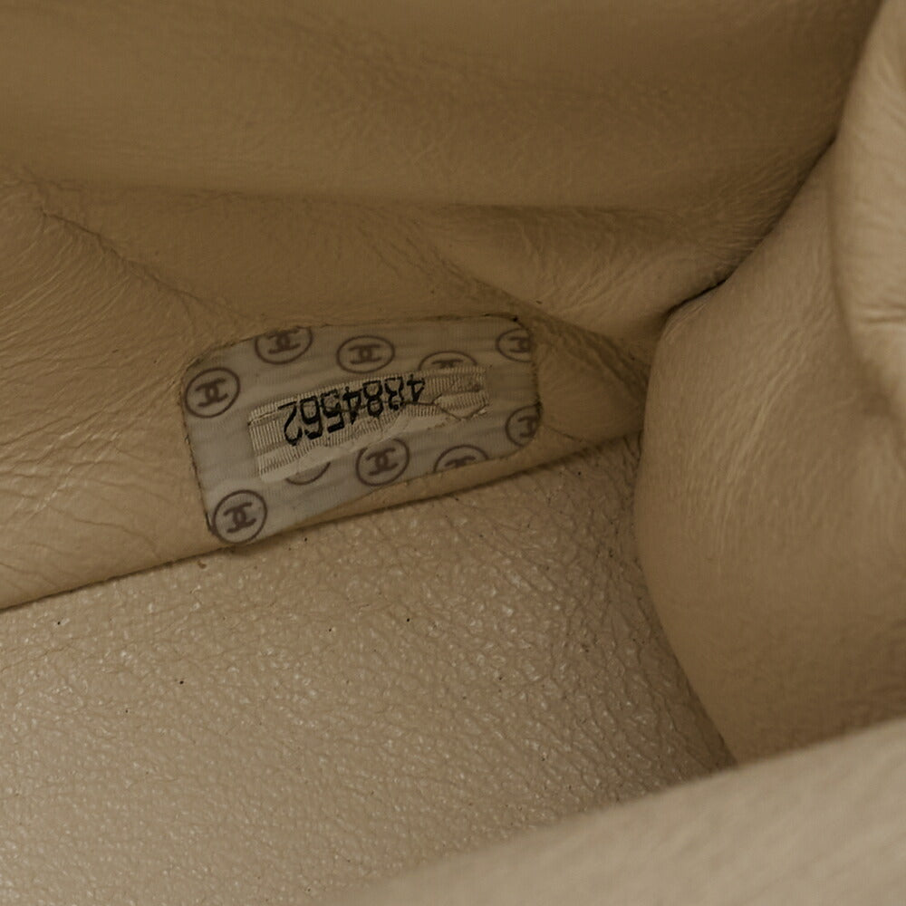Die Elfenbeinfarbe verleiht jedem Outfit einen Hauch von Frische, während das ikonische Coco Mark Ihren tadellosen Geschmack unterstreicht. Obwohl es sich um ein gebrauchtes Stück handelt, befindet es sich in ausgezeichnetem Zustand mit nur leichten Falten, die diesem zeitlosen Accessoire Charakter verleihen. Die Tasche ist mit einem Seriensiegel versehen, das ihre Echtheit garantiert.