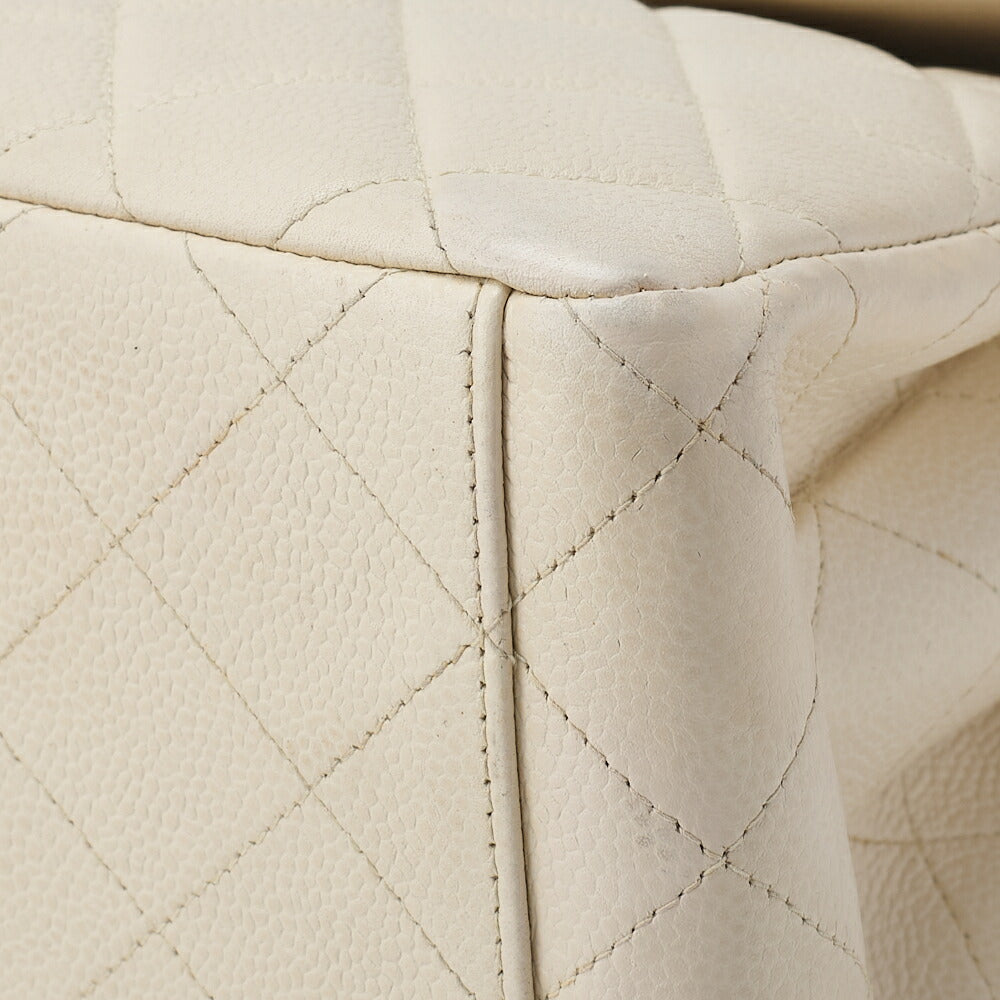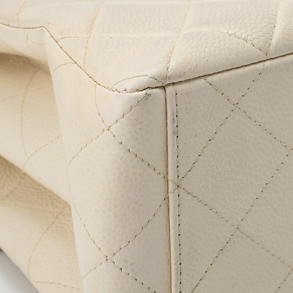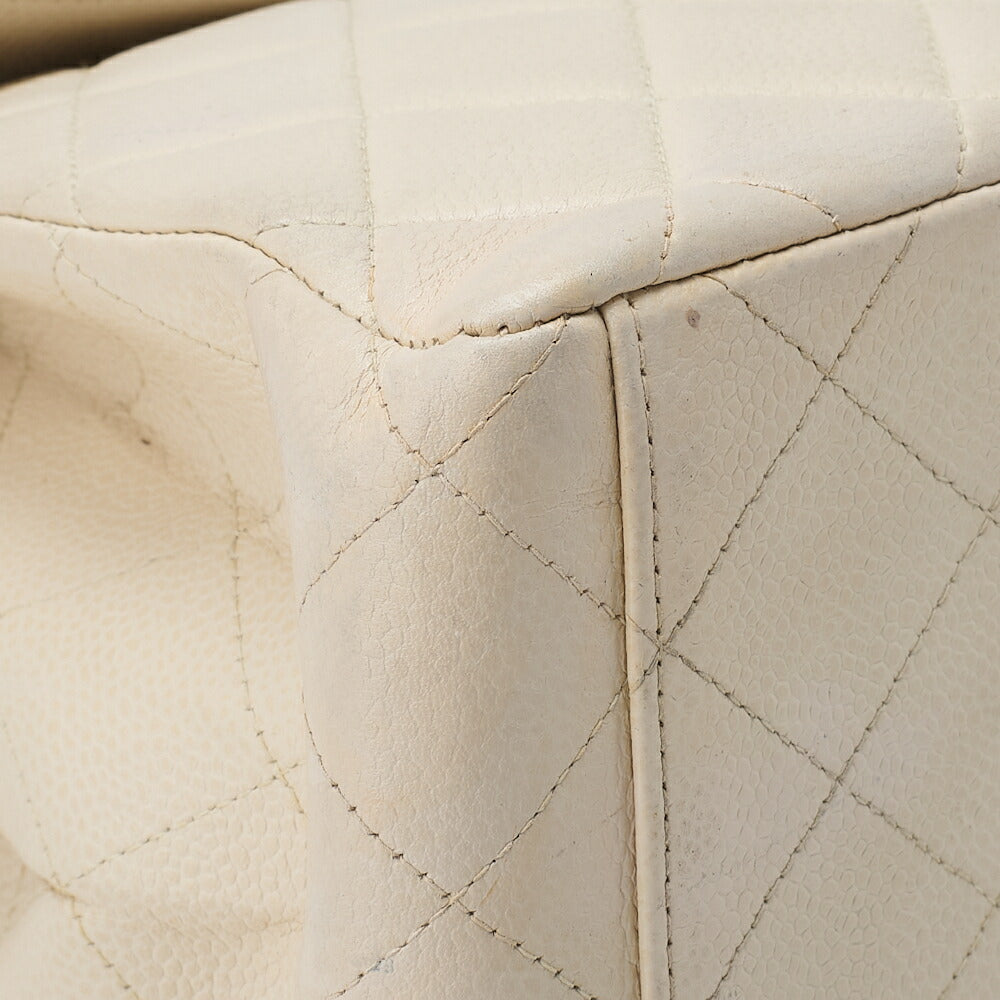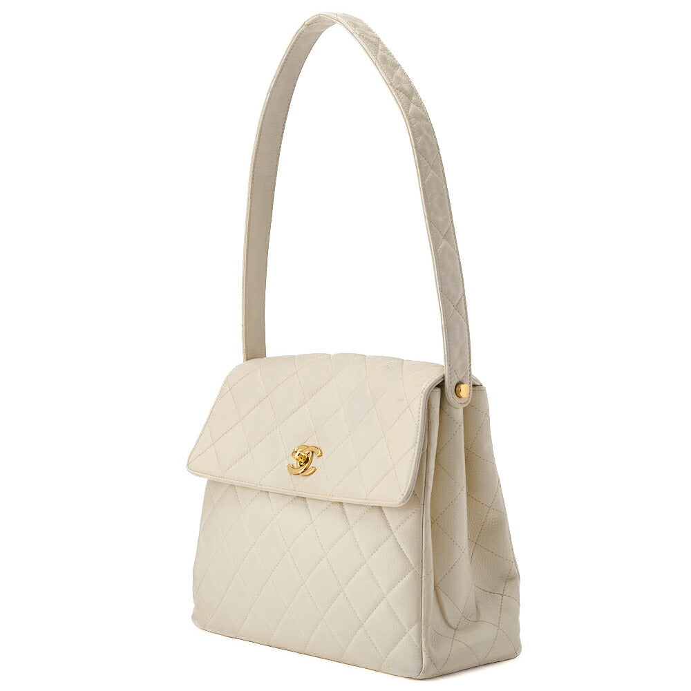Die Elfenbeinfarbe verleiht jedem Outfit einen Hauch von Frische, während das ikonische Coco Mark Ihren tadellosen Geschmack unterstreicht. Obwohl es sich um ein gebrauchtes Stück handelt, befindet es sich in ausgezeichnetem Zustand mit nur leichten Falten, die diesem zeitlosen Accessoire Charakter verleihen. Die Tasche ist mit einem Seriensiegel versehen, das ihre Echtheit garantiert.