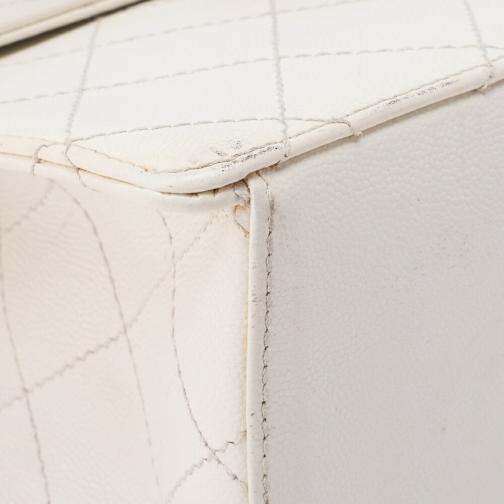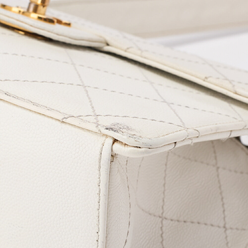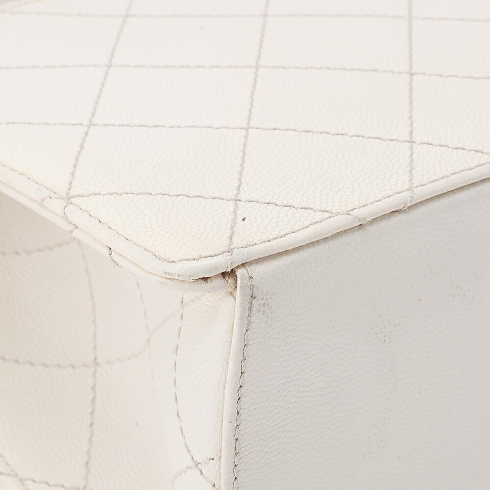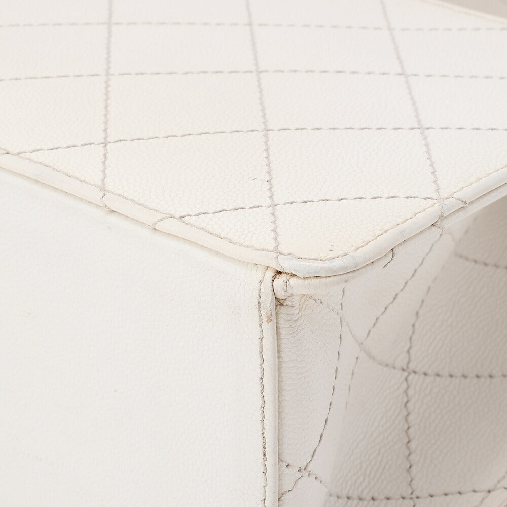 Gebrauchte Umhängetasche, Kettenschulter, Matelassé, Kaviarhaut, Weiß, Goldfarbene Hardware, Gebraucht