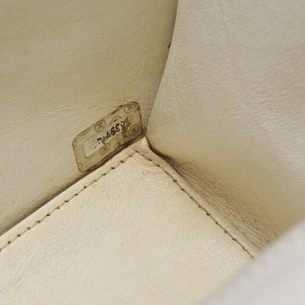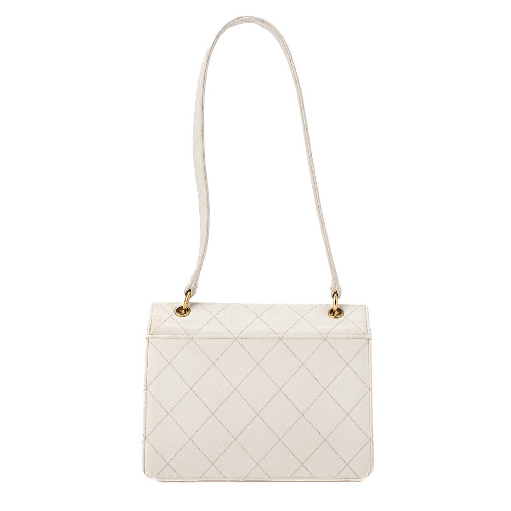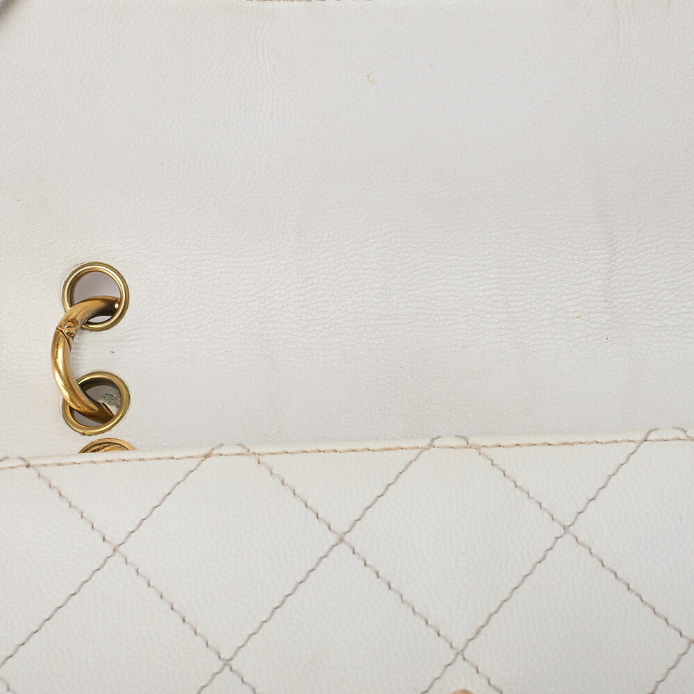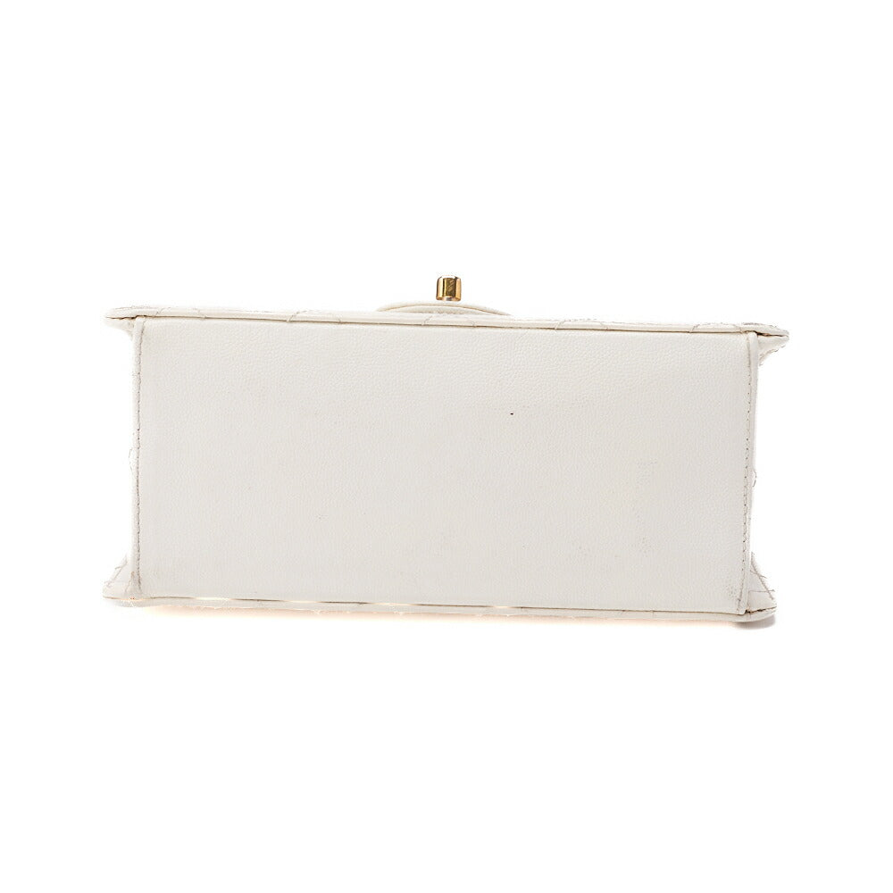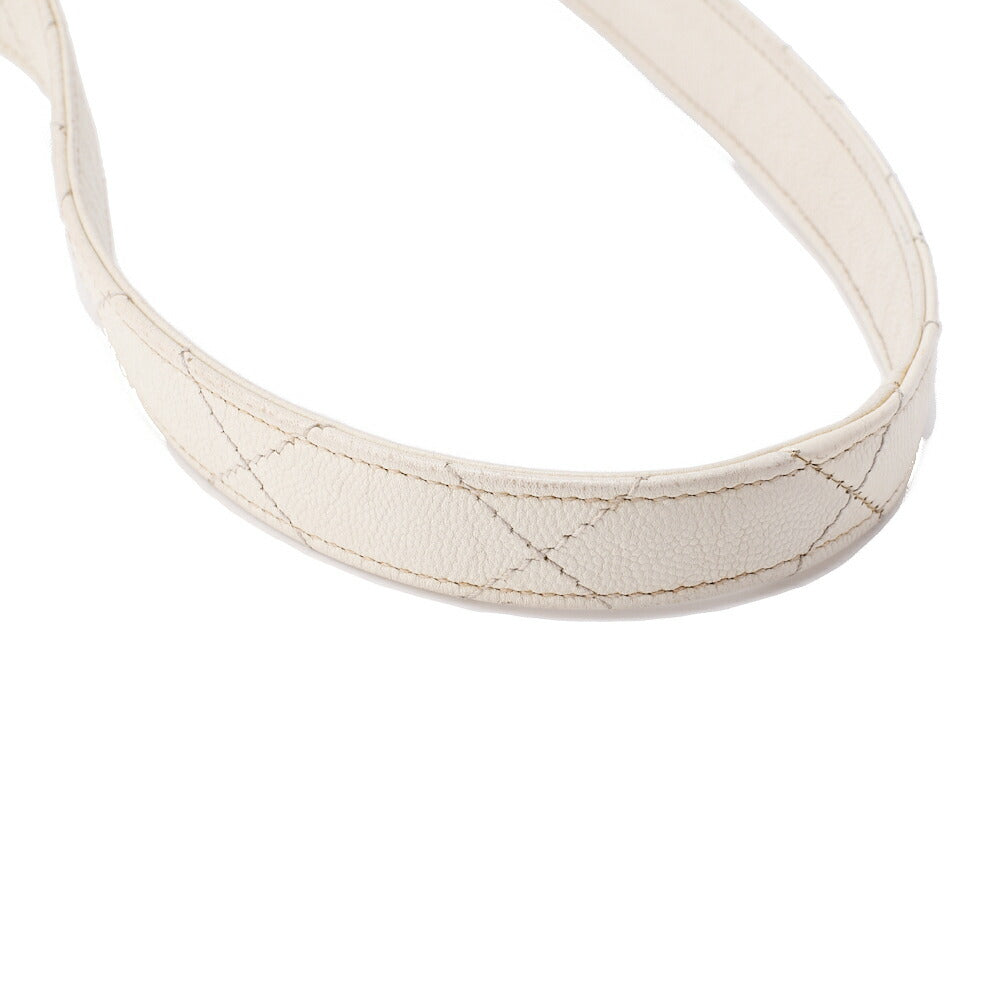 Gebrauchte Umhängetasche, Kettenschulter, Matelassé, Kaviarhaut, Weiß, Goldfarbene Hardware, Gebraucht