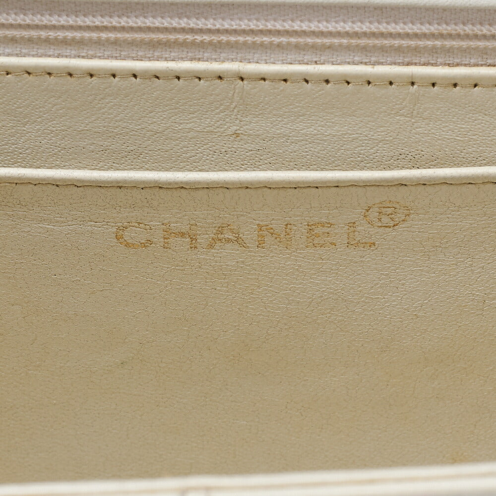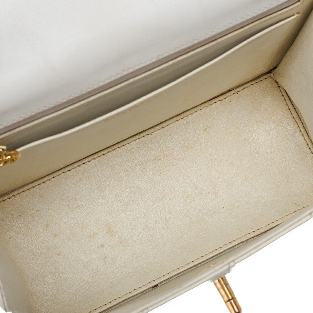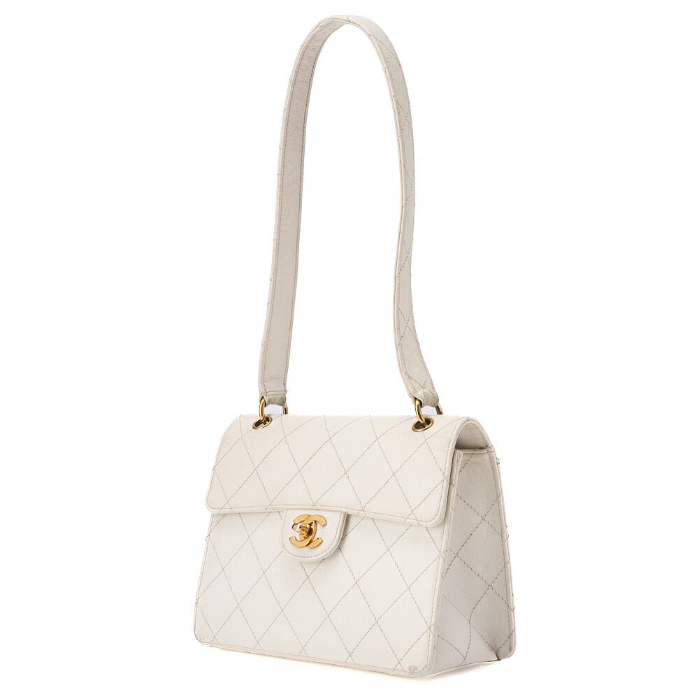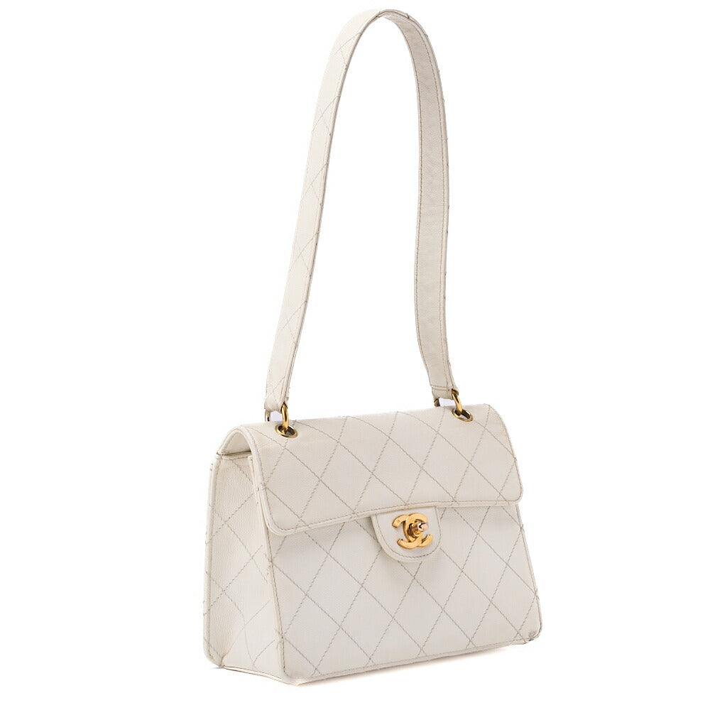 Gebrauchte Umhängetasche, Kettenschulter, Matelassé, Kaviarhaut, Weiß, Goldfarbene Hardware, Gebraucht
