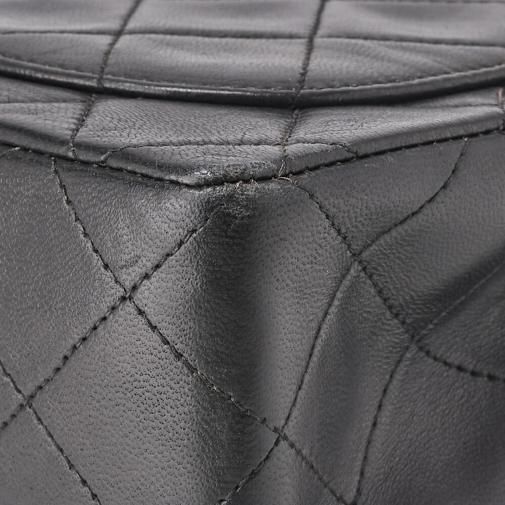 Pre-Owned Chain Shoulder Bag Matelassé Lammleder Schwarz Goldfarbene Hardware Pre-Owned