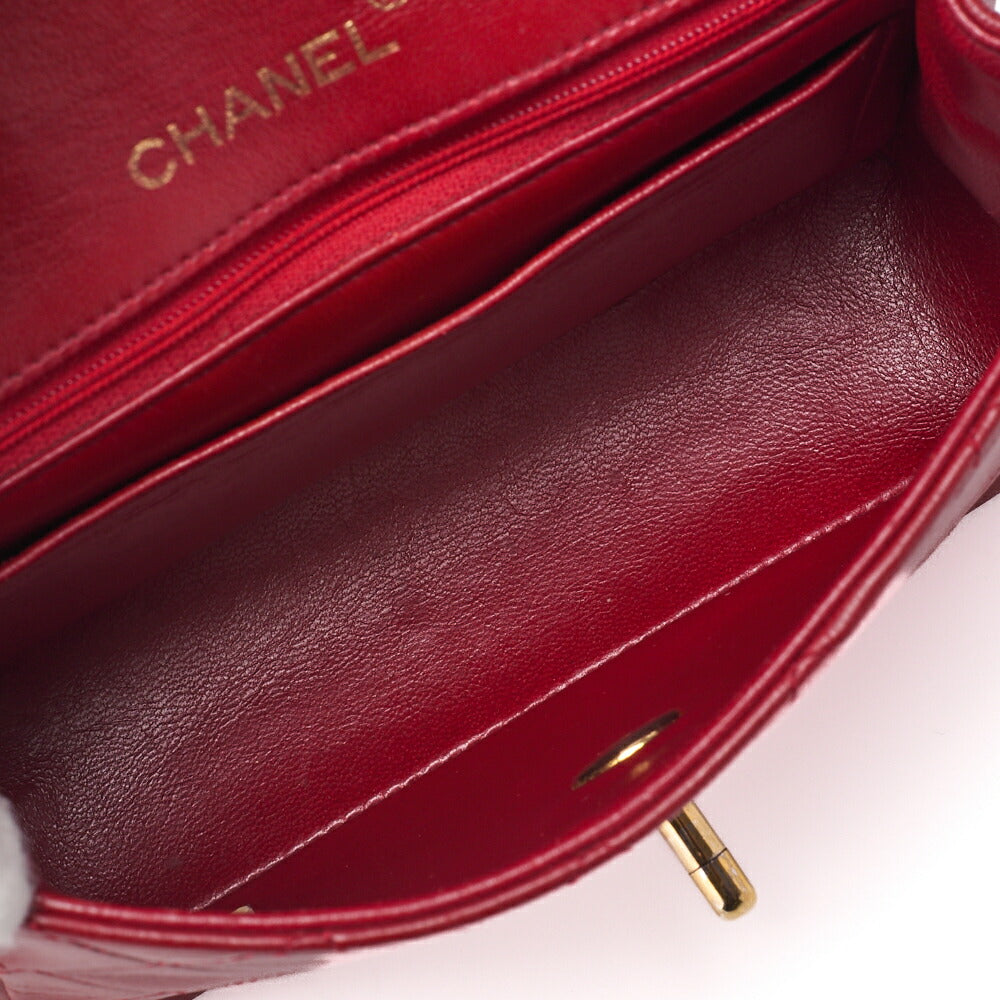 Pre-Owned Chain Shoulder Bag Mini Matelassé Lammleder Rot Goldfarbene Hardware Pre-Owned