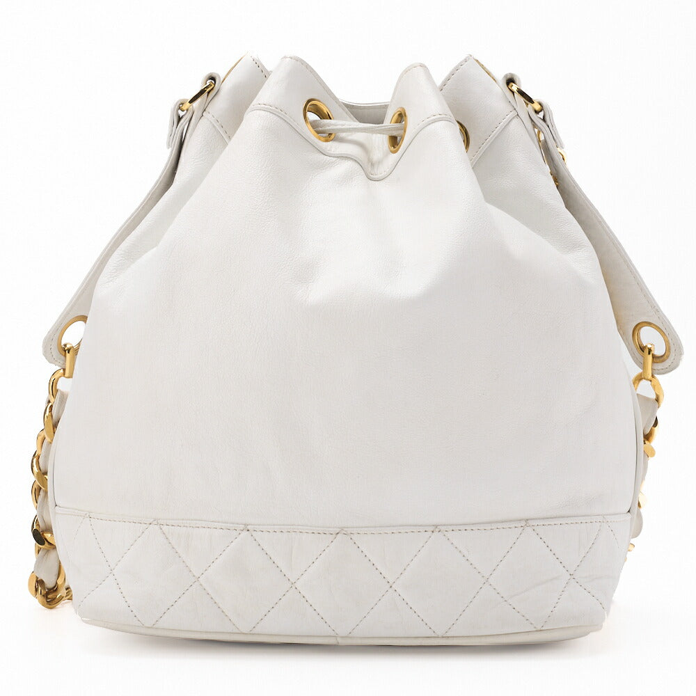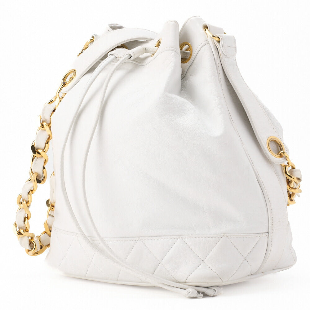 Pre-Owned Schultertasche Coco Kordelzug Typ Lammleder Weiß Gold-Ton Hardware Pre-Owned
