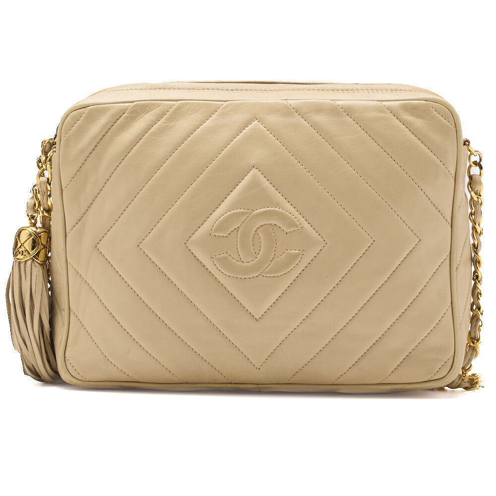 Verwöhnen Sie sich mit dem luxuriösen Charme der CHANEL Coco Mark Fransen-Schultertasche aus edlem Lammleder in einem atemberaubenden Beigeton mit eleganten Goldbeschlägen. Diese exquisite Mini-Schultertasche ist der Inbegriff von Raffinesse und Stil und ein Must-have für jede modebewusste Frau.
