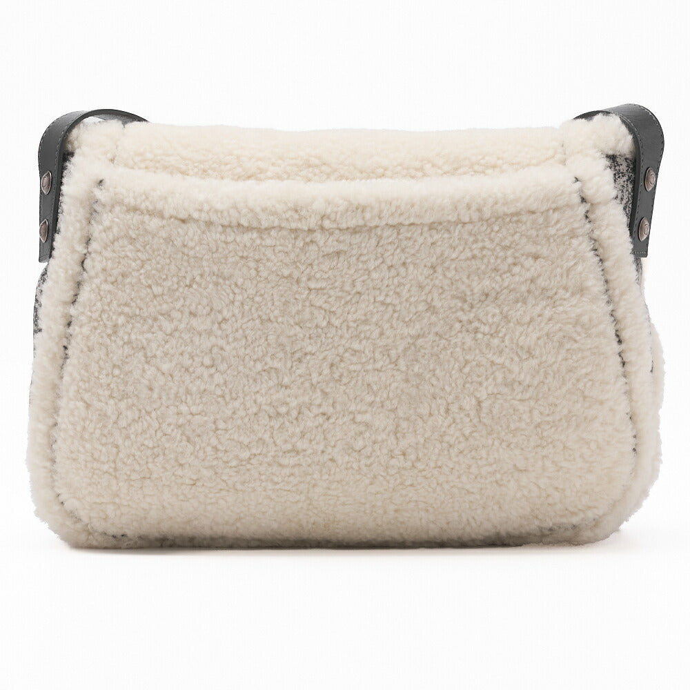 Gebrauchte Umhängetasche Coco Mark Mouton Pelz Weiß Grau Silberfarbene Hardware Gebraucht