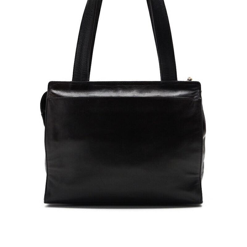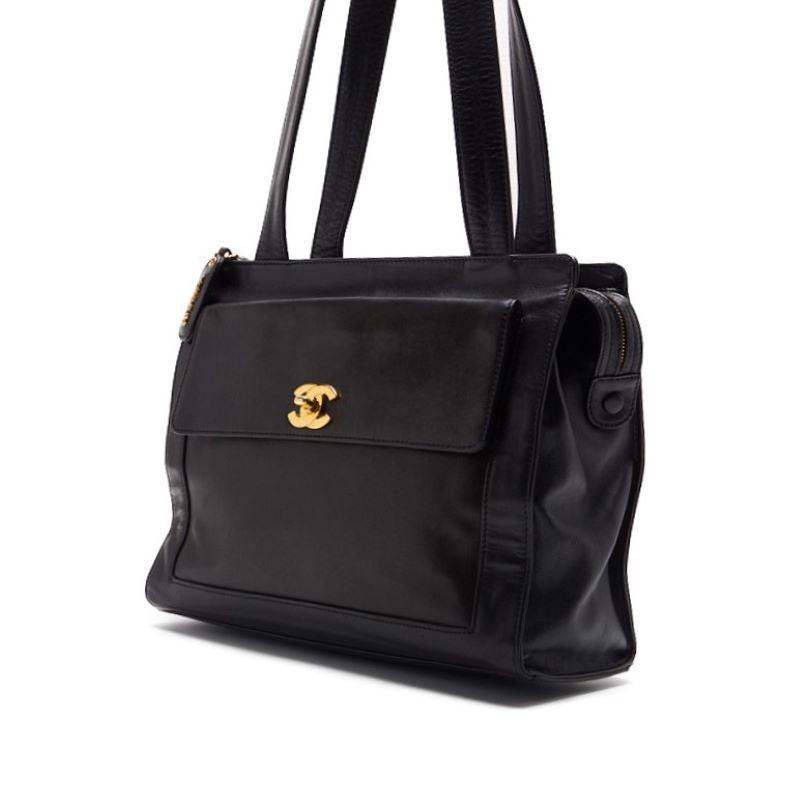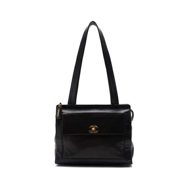 Gebrauchte Umhängetasche, Coco Mark Außenklappe, Lammleder, Schwarz, Goldfarbene Metallteile, Gebraucht