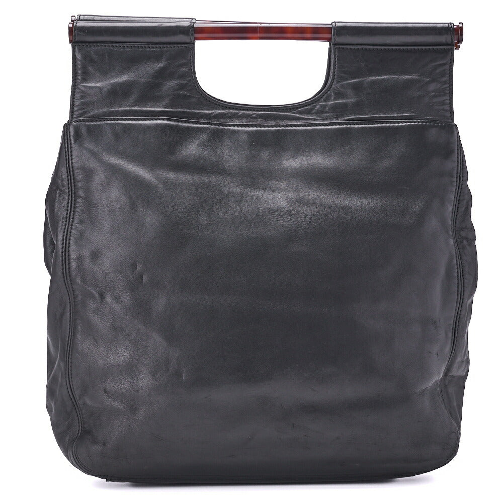 Gebrauchte Tragetasche, Coco Mark, Schildpatt, Lammleder, Schwarz, goldfarbene Metallteile, gebraucht