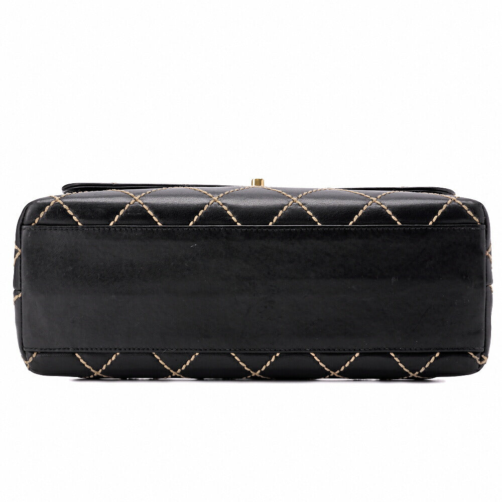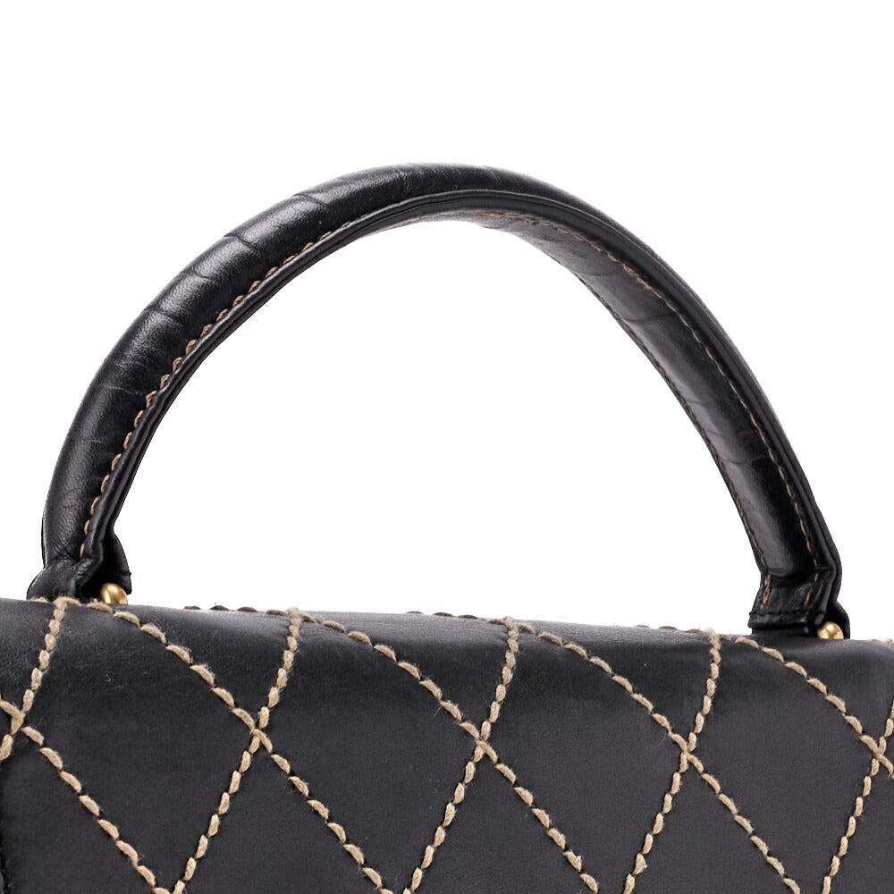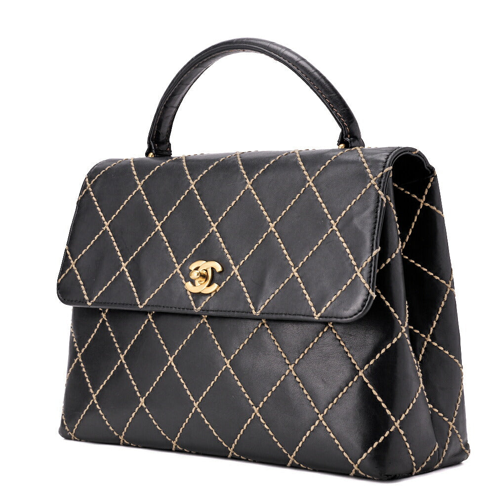 Genießen Sie die Eleganz der CHANEL Coco Mark Wild Stitch Turn Lock Handtasche , einem atemberaubenden Stück aus luxuriösem schwarzem Kalbsleder. Diese exquisite Tragetasche vereint Eleganz und Funktionalität und ist das perfekte Accessoire für jede moderne Dame.