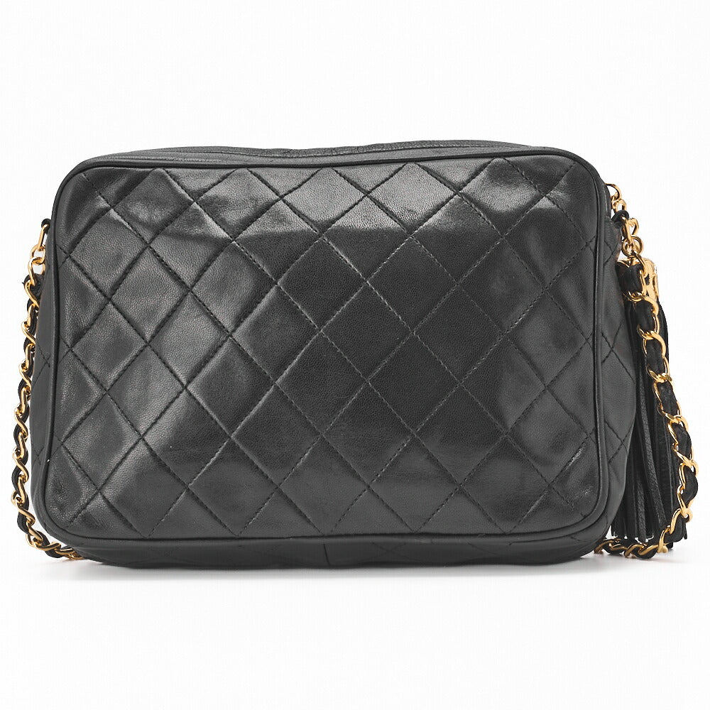 Gebrauchte Umhängetasche, Coco Mark, Kettenschulter, Lammleder, Schwarz, Goldfarbene Hardware, Gebraucht