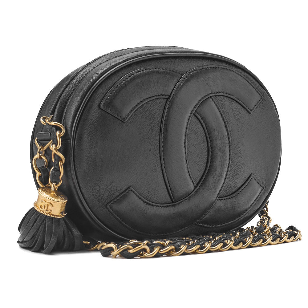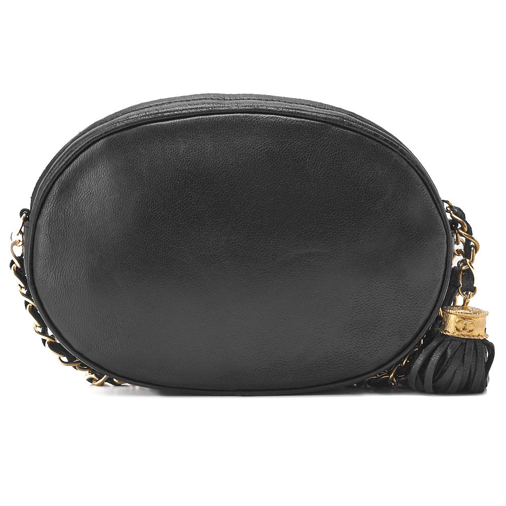 Pre-Owned Schultertasche, Coco Mark mit Fransen, Lammleder, Schwarz, goldfarbene Hardware, Pre-Owned