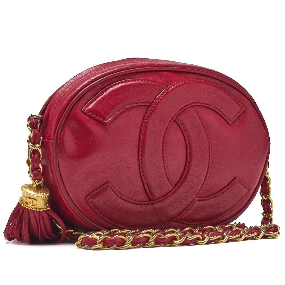 Gebrauchte Umhängetasche, Coco Mark mit Fransenkette an der Schulter, Lammleder, Rot, goldfarbene Metallteile, gebraucht