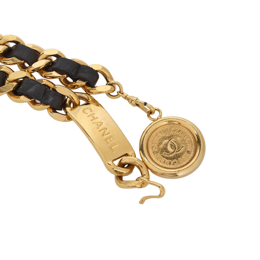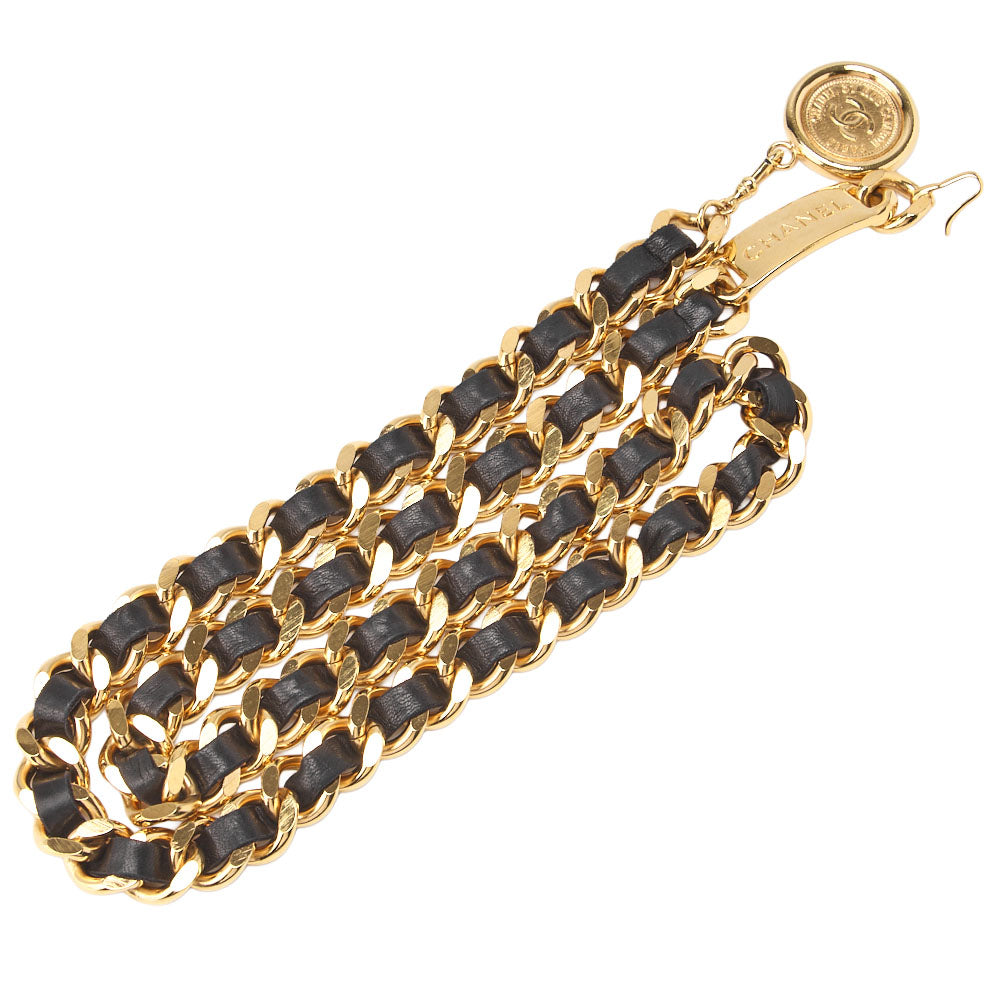 Gebrauchter Cocomark Kettengürtel GP Leder Schwarz Goldfarbene Hardware, Gebraucht