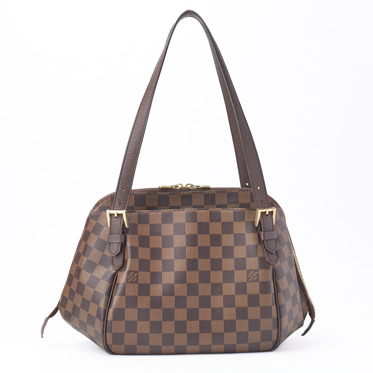 Gebrauchte Vuitton Handtasche Damier Belem MM PVC Leder Braun Goldfarbene Hardware Gebraucht