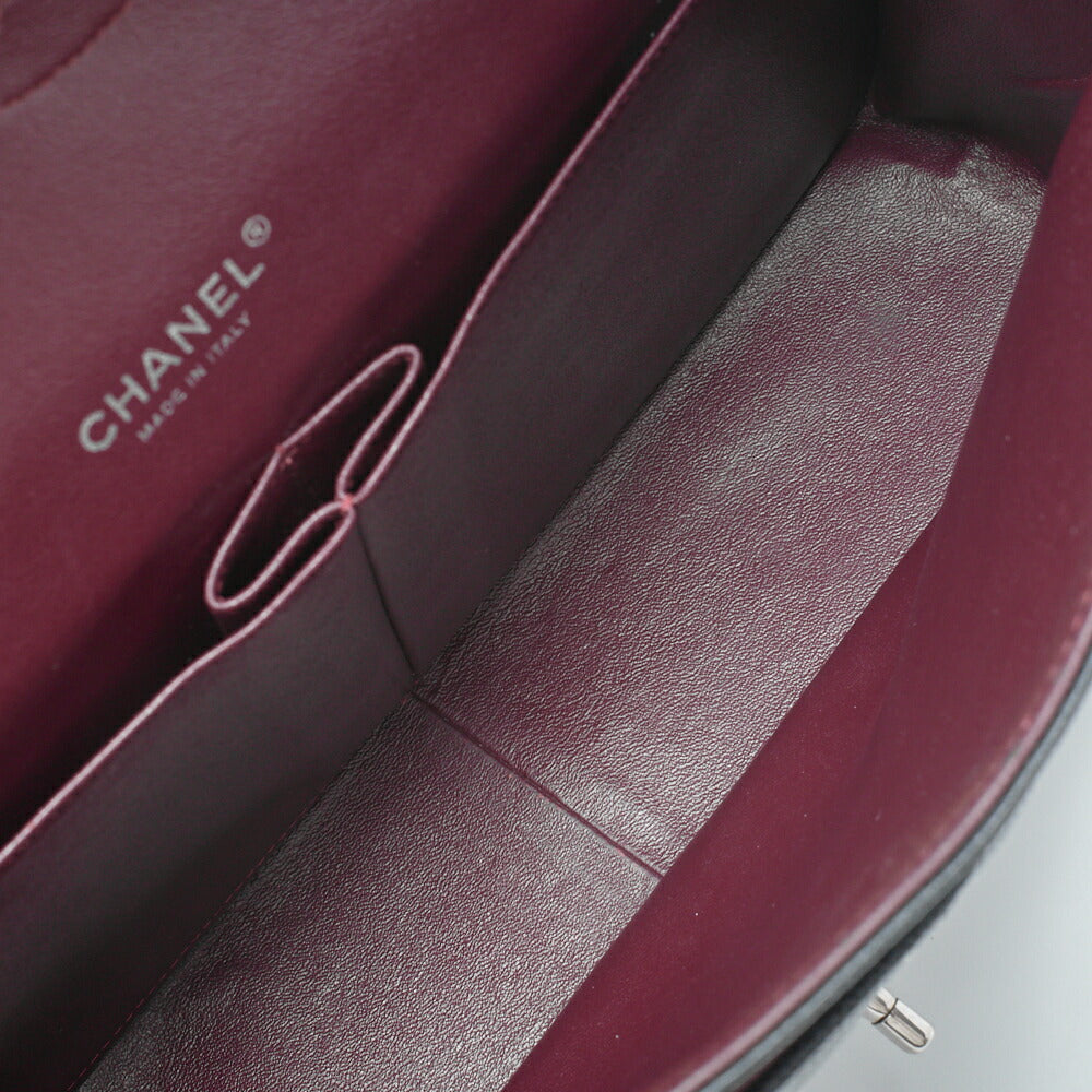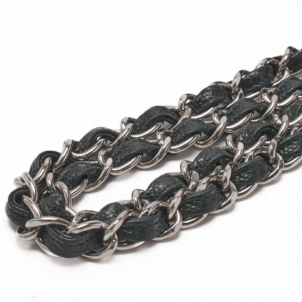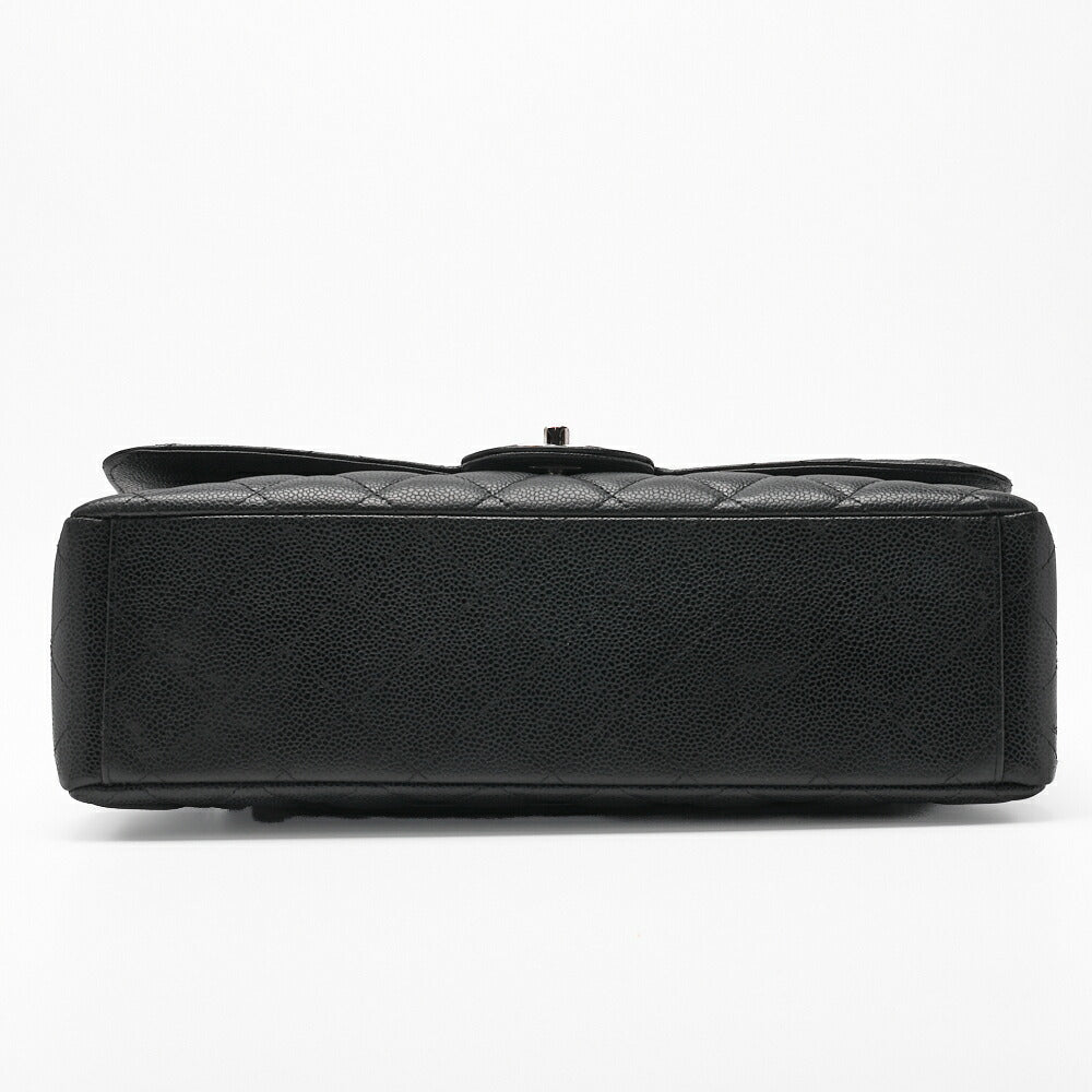 Gebrauchte Umhängetasche, Deca Matelassé, Kaviarhaut, Schwarz, Silberfarbene Metallteile, Gebraucht