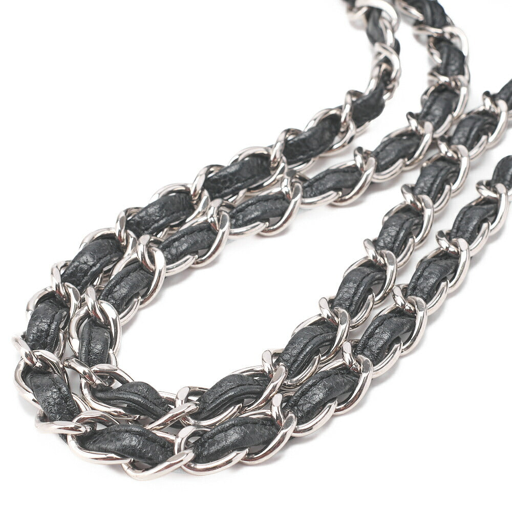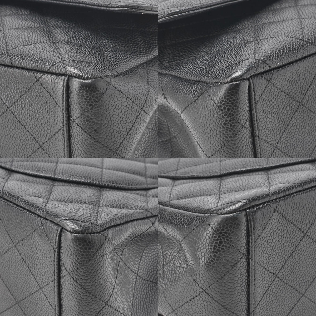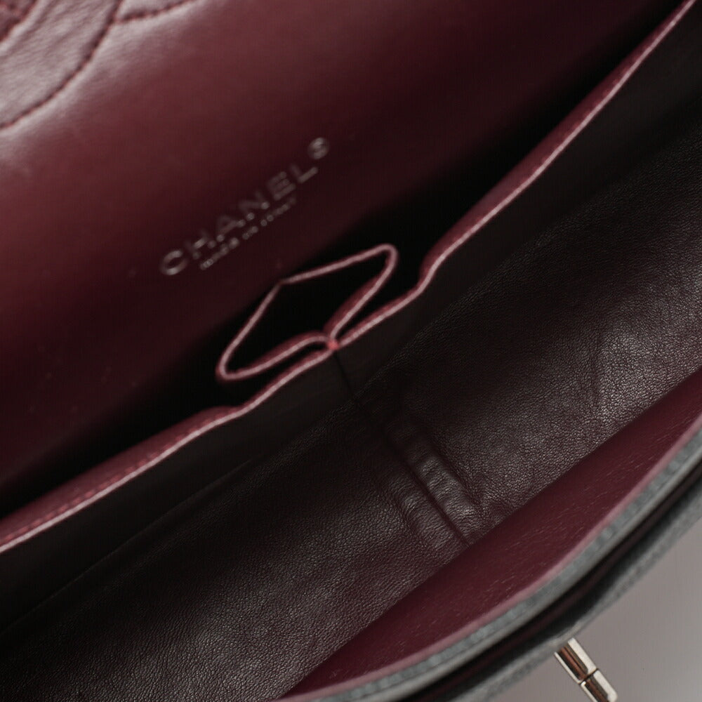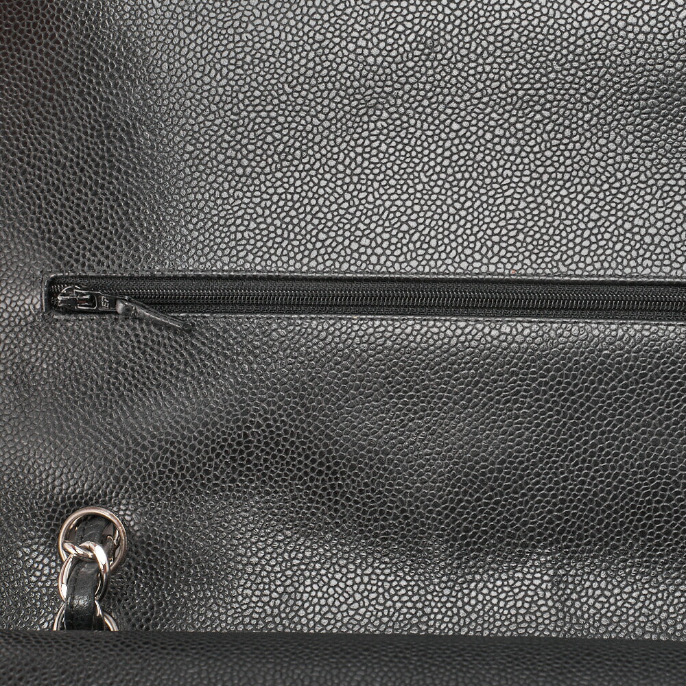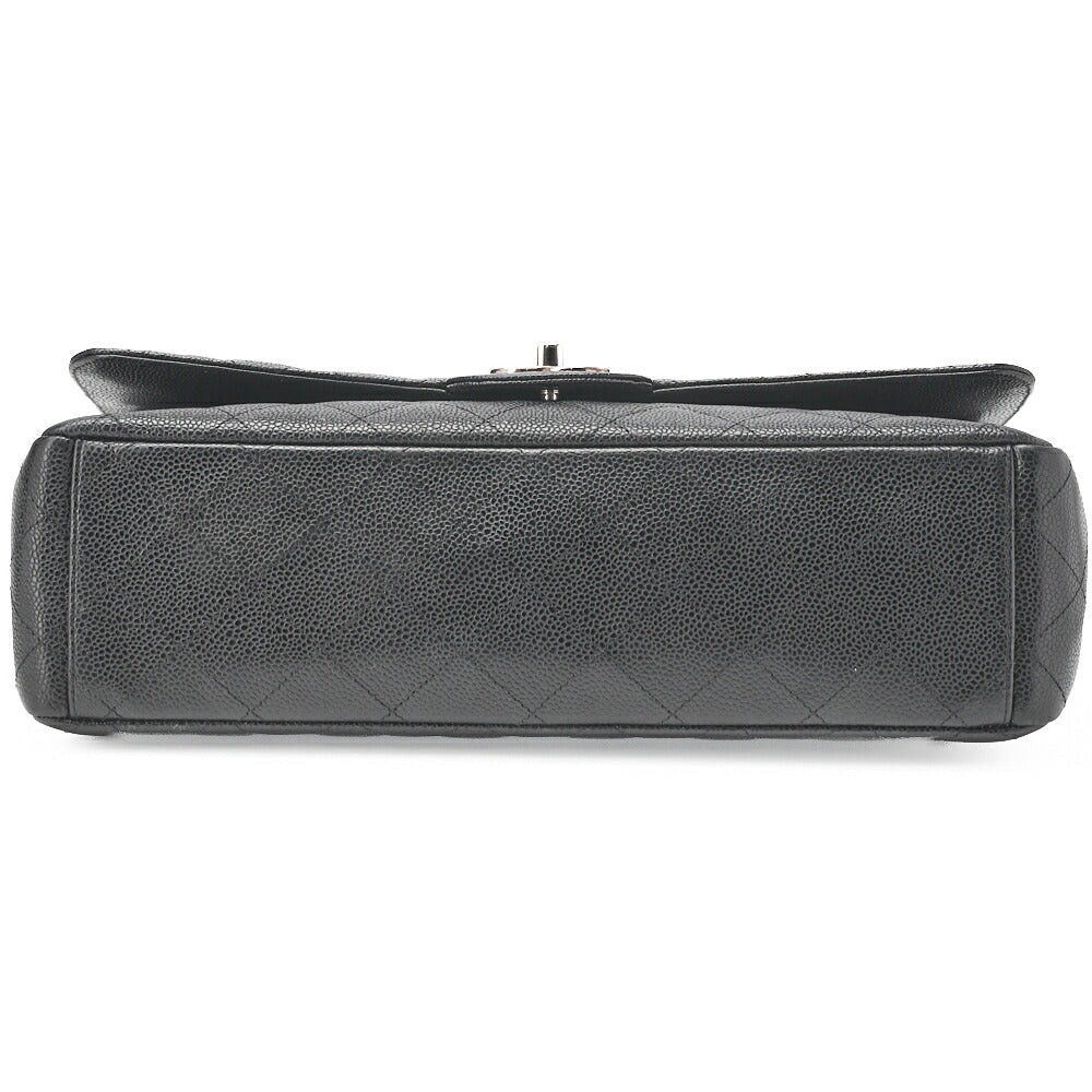 Gebrauchte Umhängetasche, Deca Matelassé Doppelklappe, Kaviarhaut, Schwarz, Silberfarbene Metallteile, Gebraucht