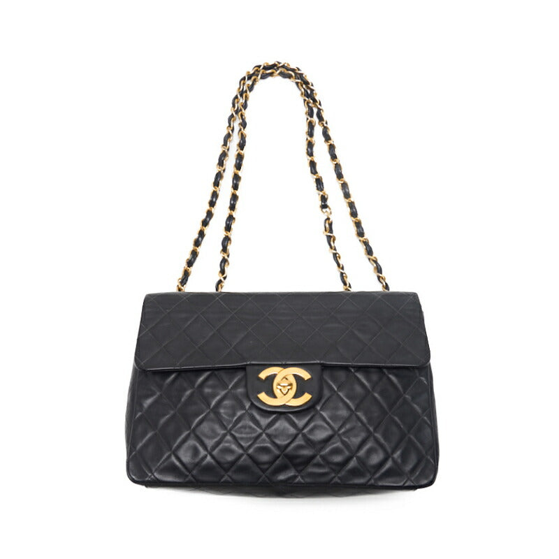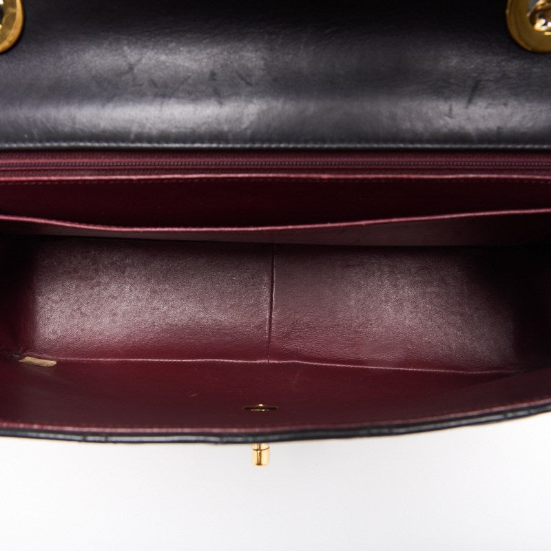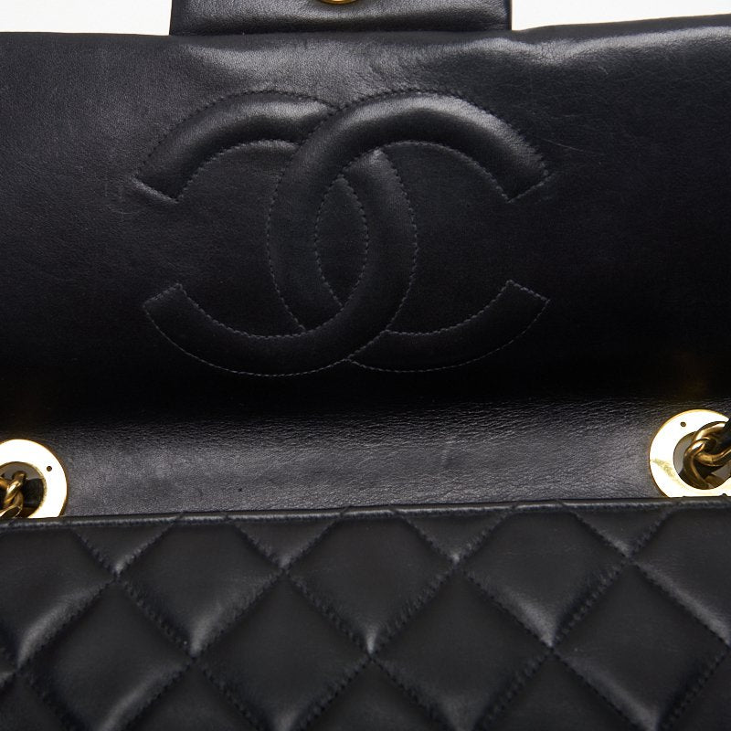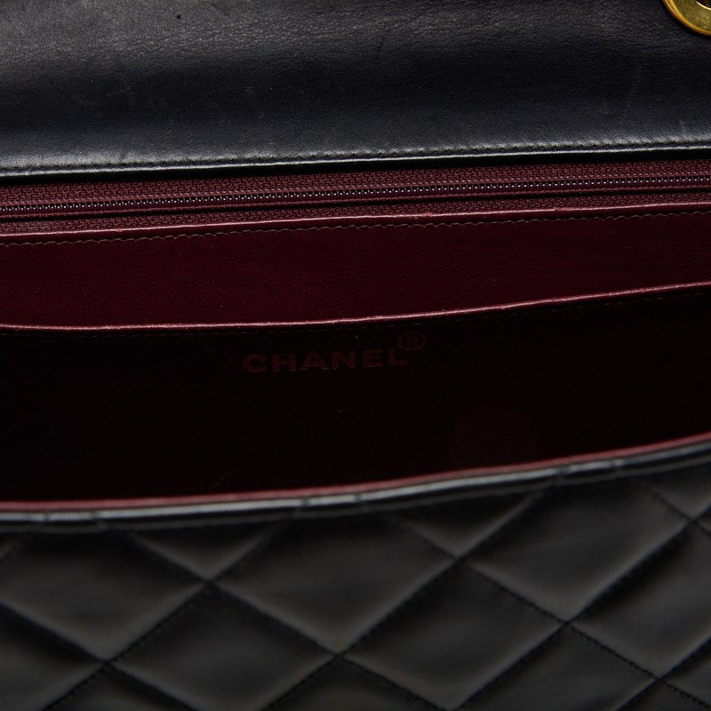 Pre-Owned Schultertasche, Deca Matelassé Drehverschluss, Lammleder, Schwarz, Goldfarbene Metallteile, Pre-Owned