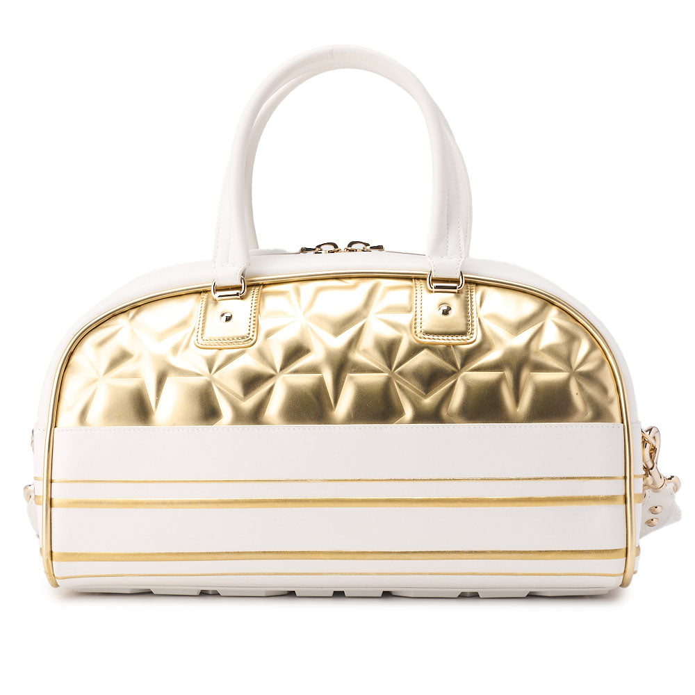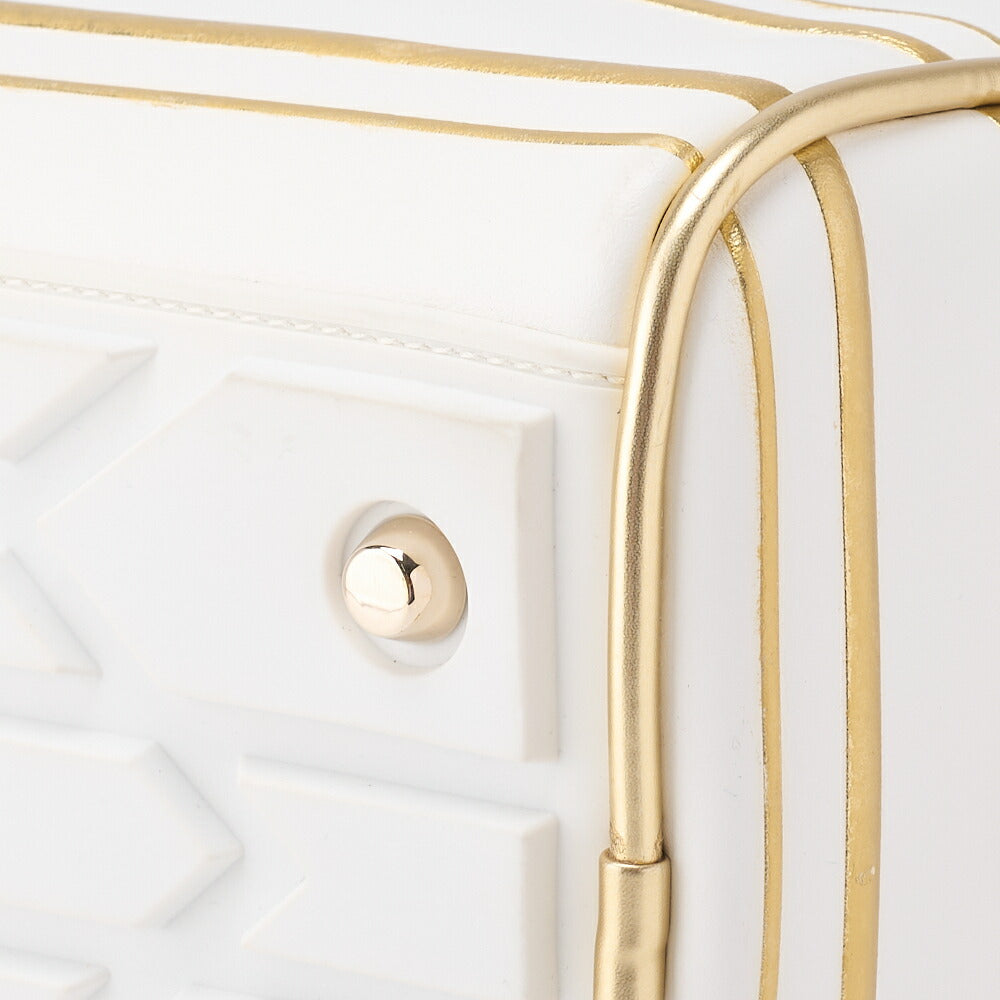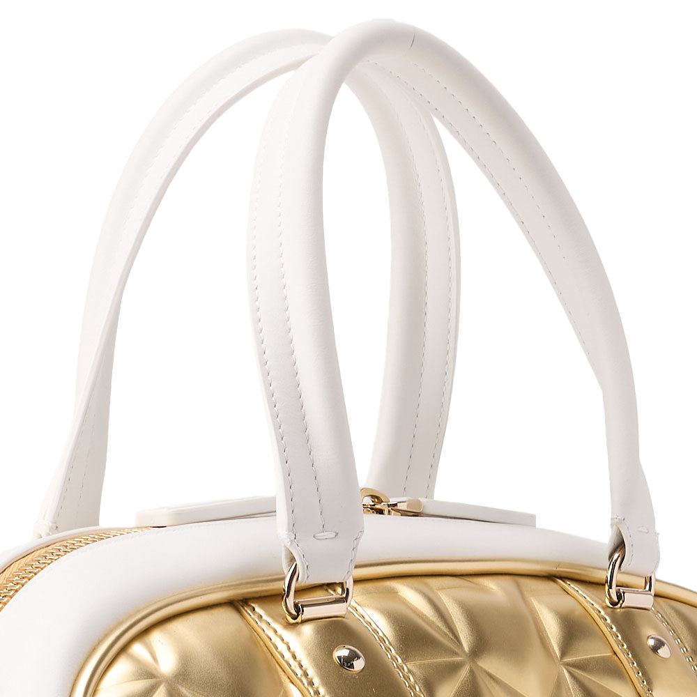 Gebrauchte 2WAY Boston Bag Leder Gummi Weiß Goldfarbene Hardware Gebraucht