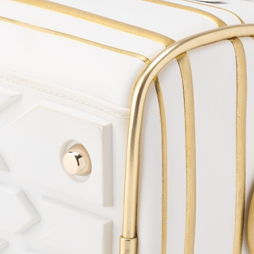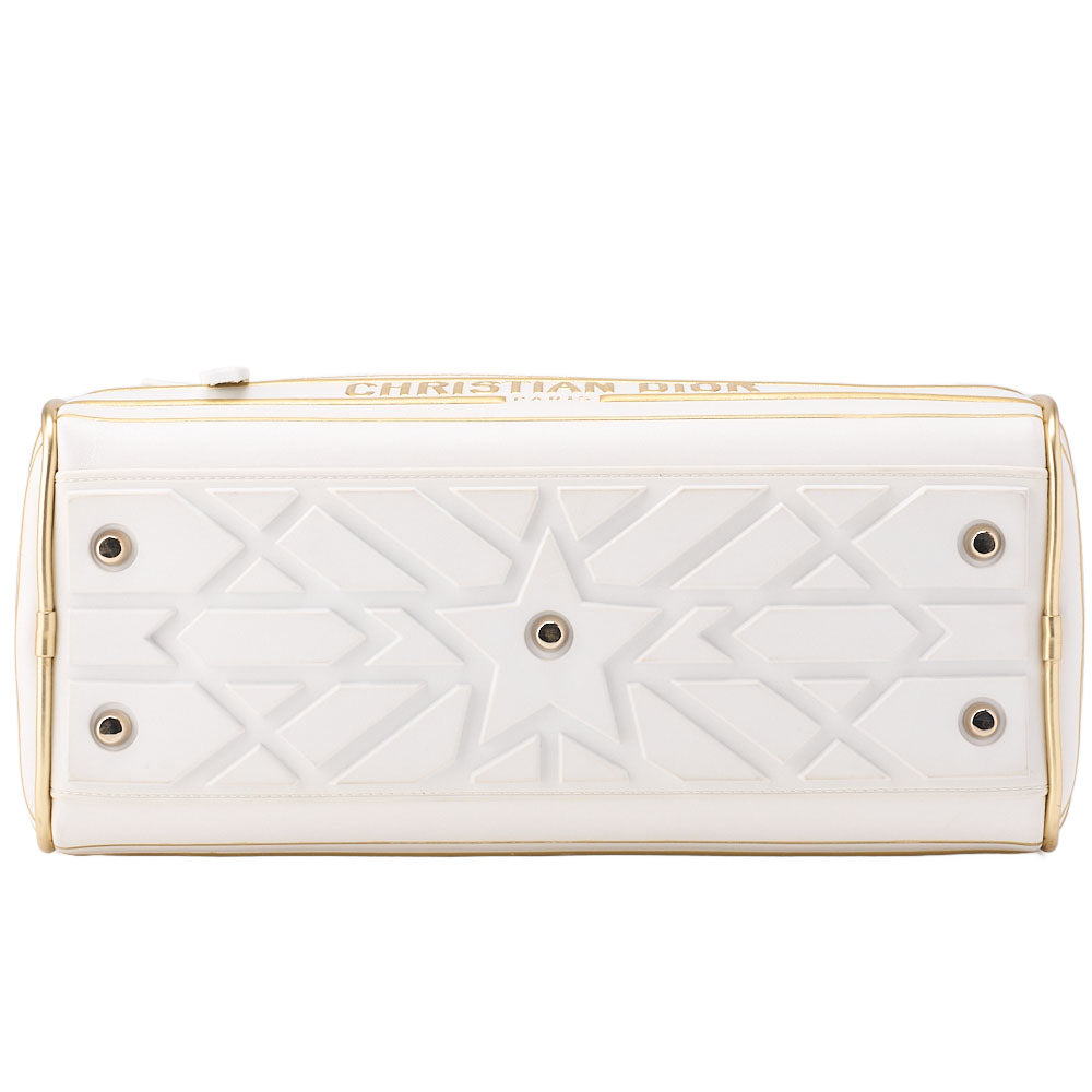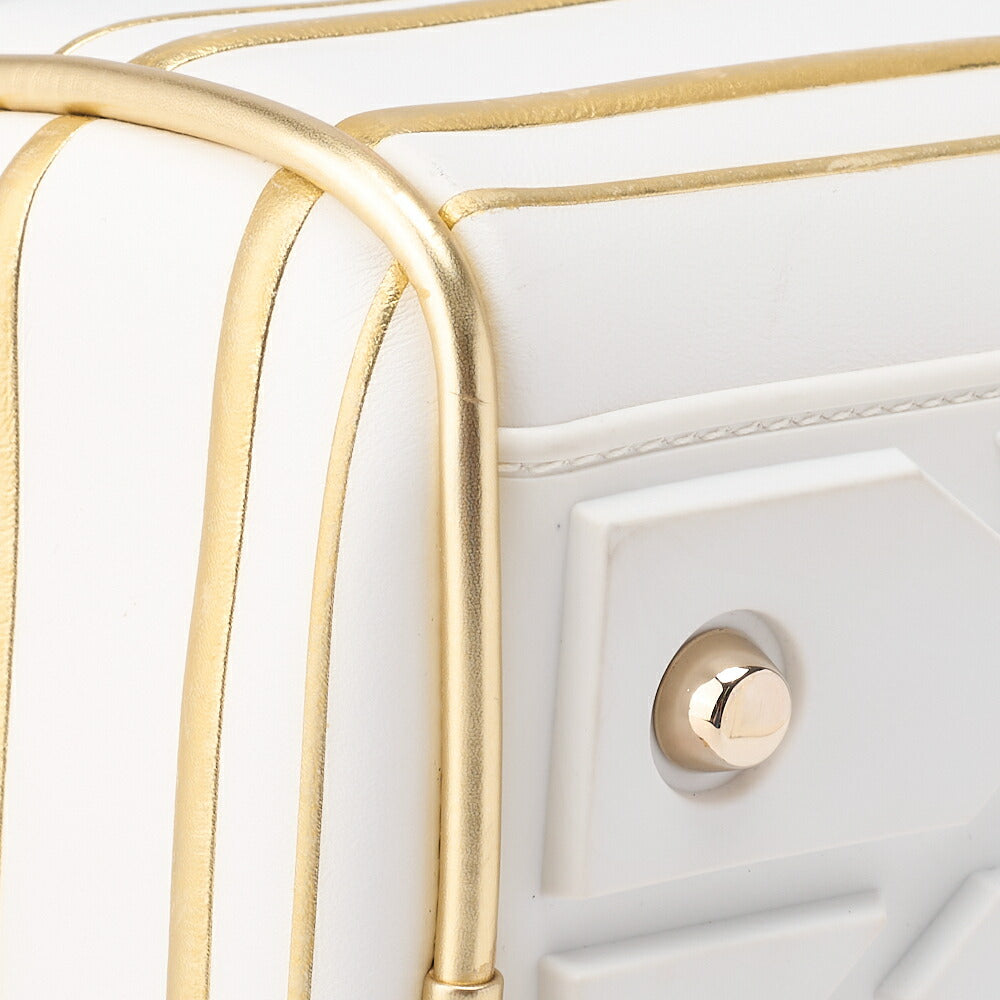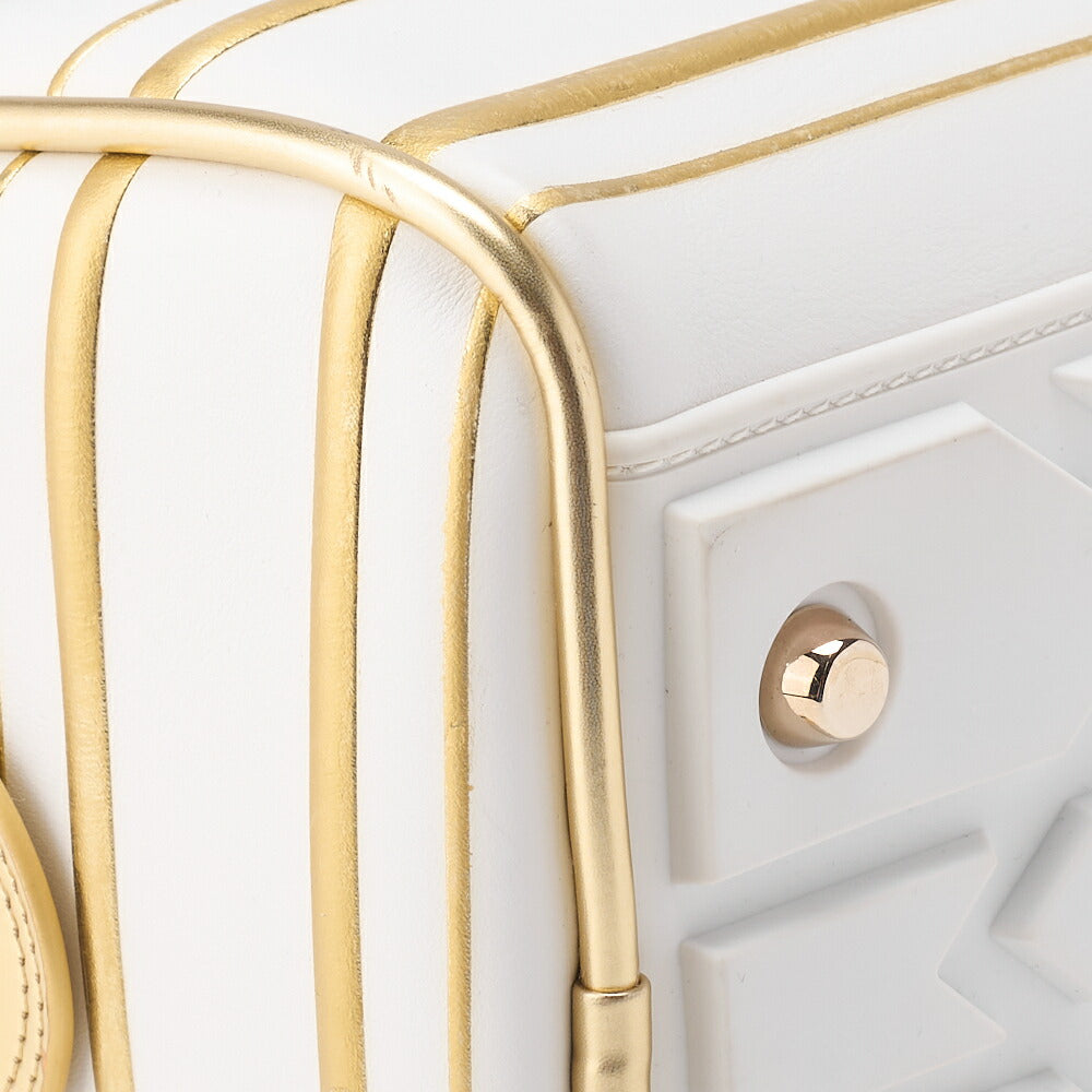 Erweitern Sie Ihre Accessoire-Auswahl mit der Dior 2WAY Boston Bag – einer atemberaubenden Kombination aus Eleganz und Funktionalität. Diese luxuriöse Handtasche aus hochwertigem Leder und Gummi besticht durch ihre schicke Gold- und Weißoptik und ist die perfekte Ergänzung für jede Garderobe.