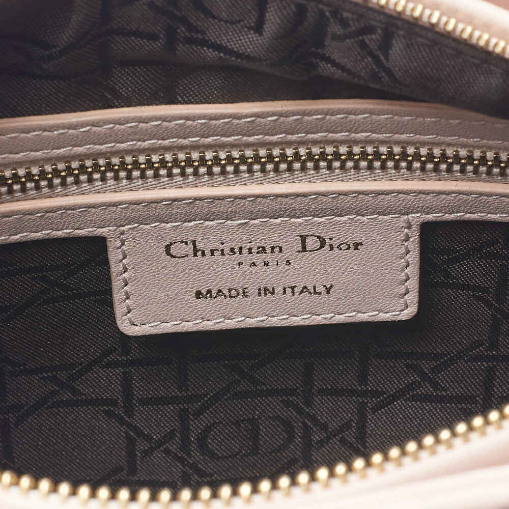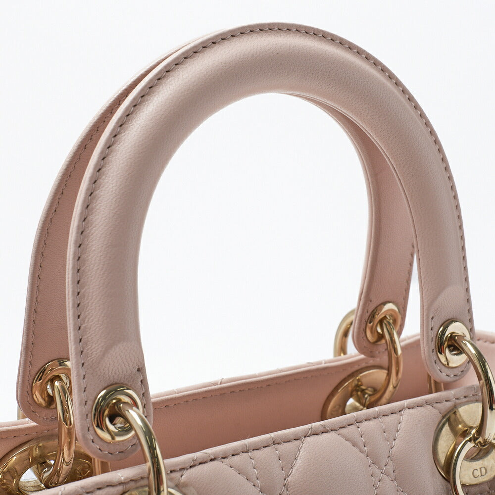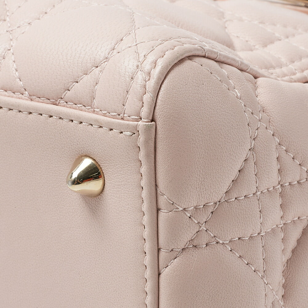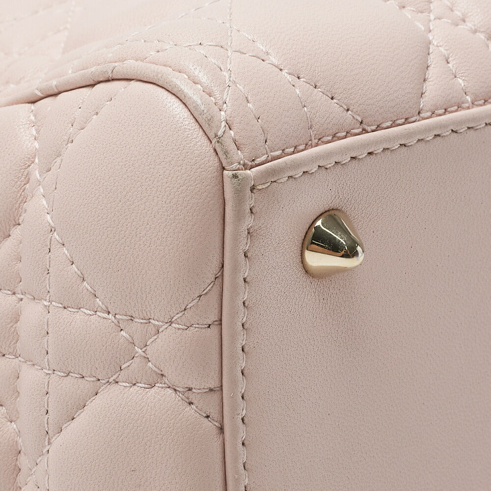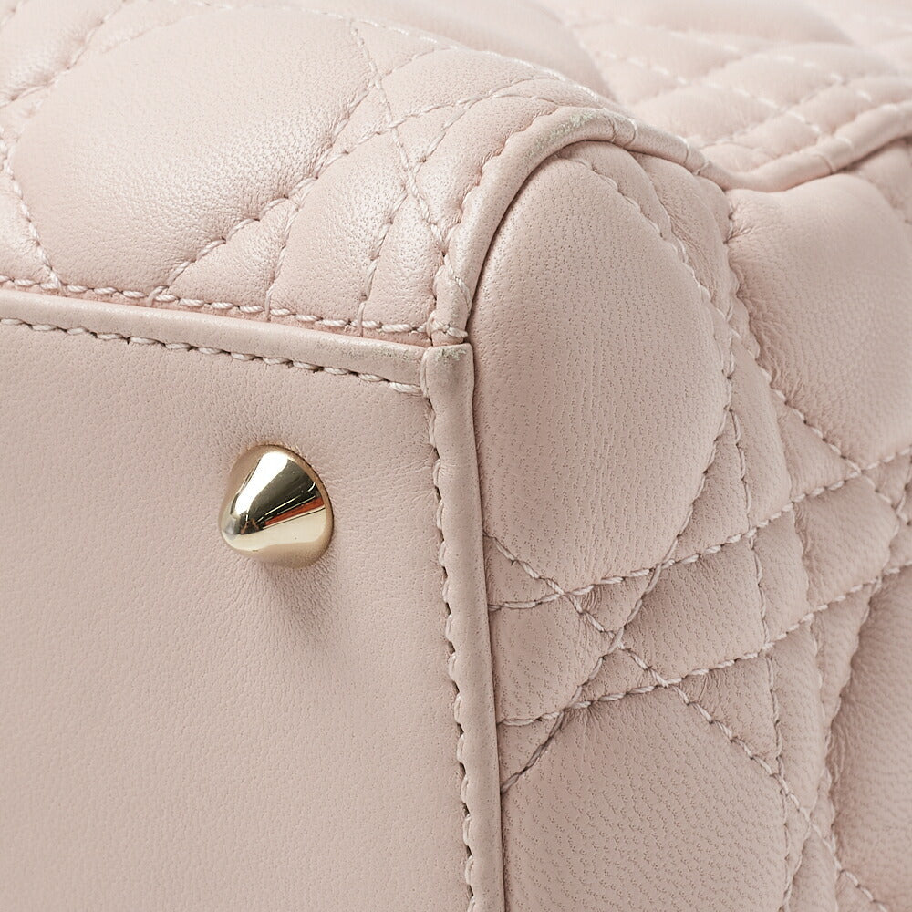 Wir präsentieren die exquisite Dior Lady Dior Cannage 2WAY Handtasche aus luxuriösem Lammleder, wunderschön präsentiert in einem zarten Hellrosa mit atemberaubenden Goldbeschlägen. Diese ikonische Handtasche ist nicht nur ein modisches Accessoire; sie ist ein Statement-Stück, das Eleganz und Raffinesse verkörpert.