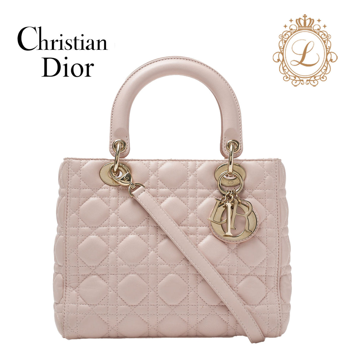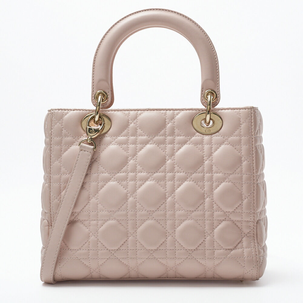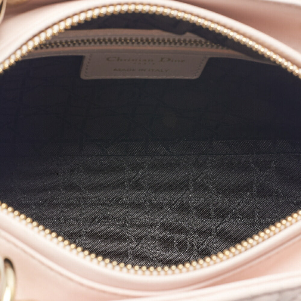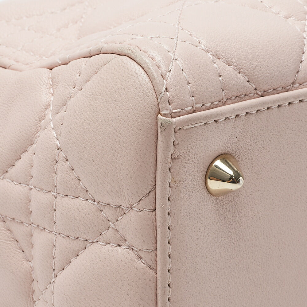 Wir präsentieren die exquisite Dior Lady Dior Cannage 2WAY Handtasche aus luxuriösem Lammleder, wunderschön präsentiert in einem zarten Hellrosa mit atemberaubenden Goldbeschlägen. Diese ikonische Handtasche ist nicht nur ein modisches Accessoire; sie ist ein Statement-Stück, das Eleganz und Raffinesse verkörpert.