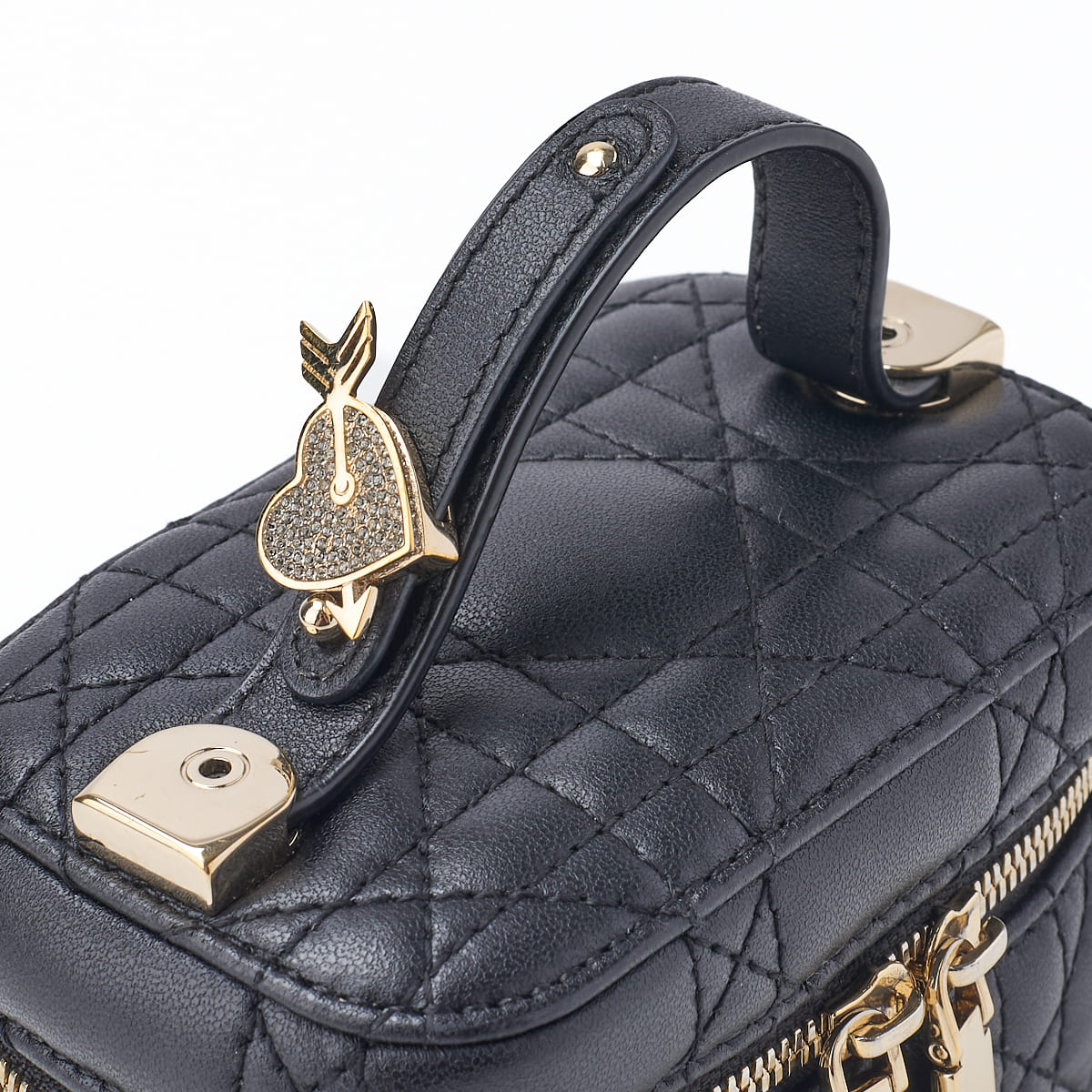 Erweitern Sie Ihre Accessoire-Auswahl mit der Dior Lady Dior Vanity Cannage 2WAY Schultertasche , einem atemberaubenden Stück aus luxuriösem Lammleder in zeitlosem Schwarz mit eleganten Goldbeschlägen. Diese exquisite Handtasche ist vielseitig und stilvoll und ein Must-have für jede modebewusste Frau.