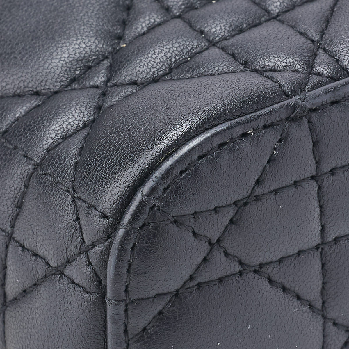 Gebrauchte Lady Vanity Cannage 2WAY Schultertasche Lammleder Schwarz Goldfarbene Hardware Gebraucht