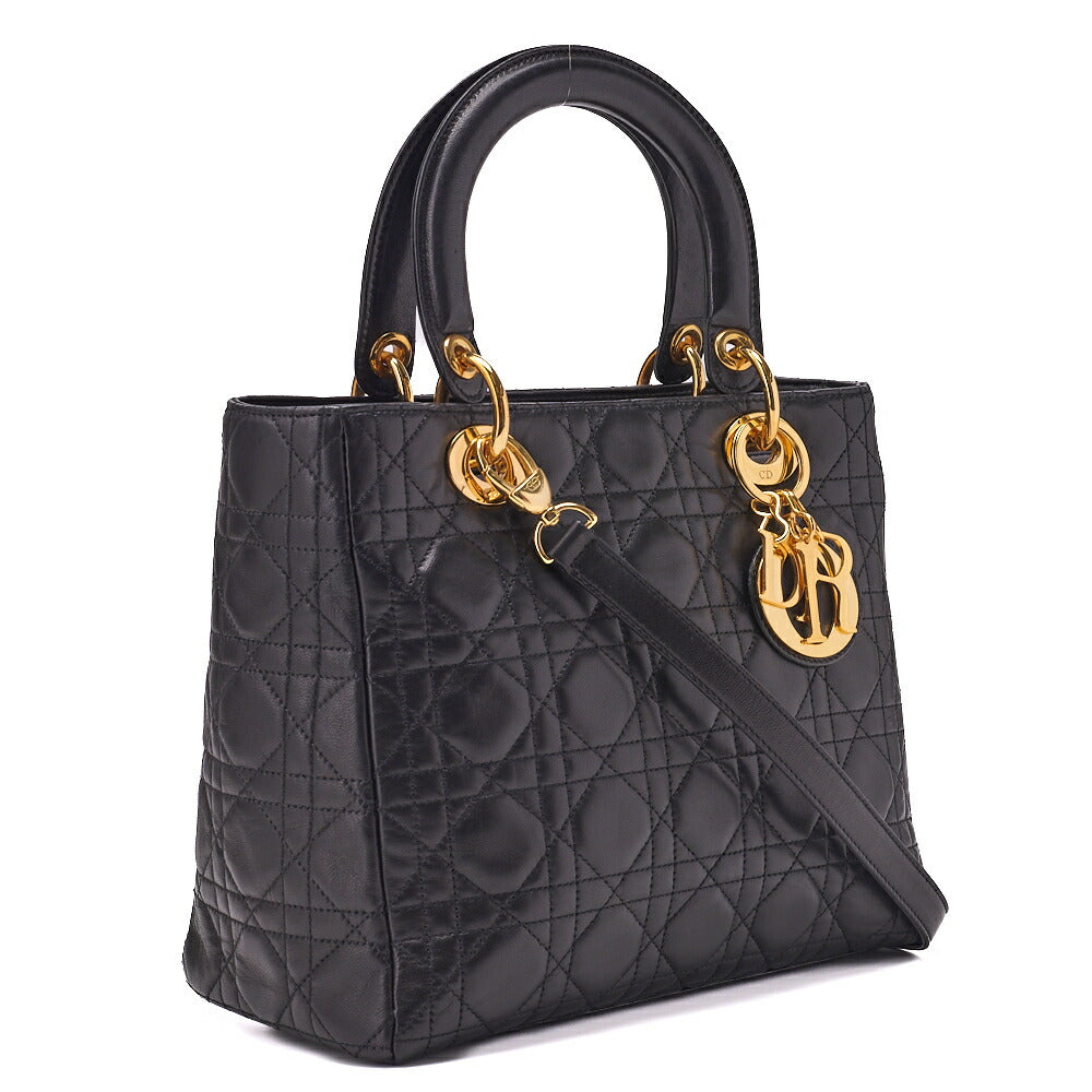 Entdecken Sie die Eleganz der Dior Lady Dior Cannage 2WAY Handtasche aus luxuriösem Lammleder, ein zeitloses Stück, das Stil und Funktionalität perfekt vereint. Diese atemberaubende Handtasche in klassischem Schwarz mit exquisiten Goldbeschlägen ist nicht nur ein Accessoire, sondern ein Statement der Eleganz für jeden Anlass.