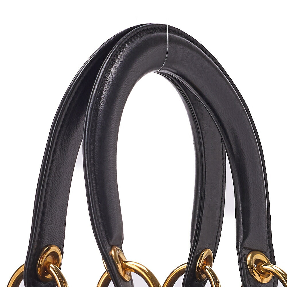 Gebrauchte Lady Cannage 2WAY Handtasche Lammleder Schwarz Goldfarbene Hardware Gebraucht
