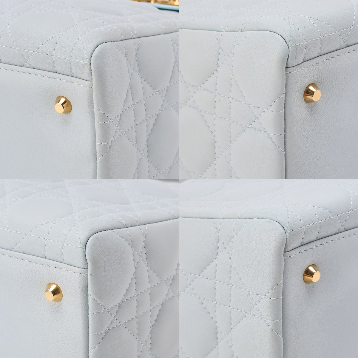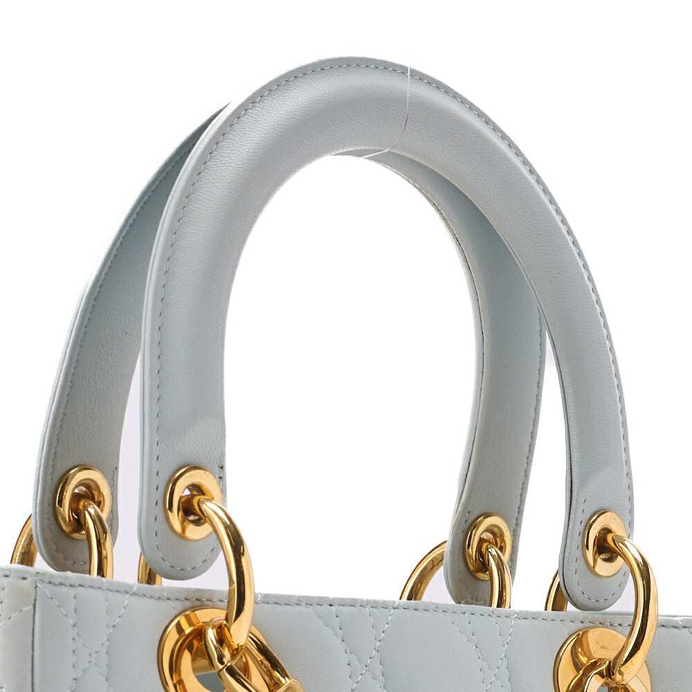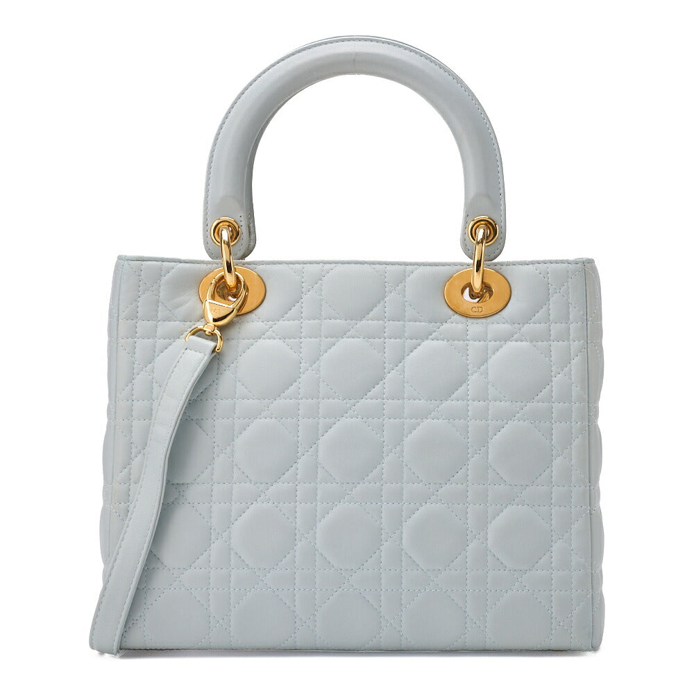 Verpassen Sie nicht die Chance, ein Stück Luxus zu besitzen. Ergänzen Sie Ihre Sammlung noch heute mit der Dior Lady Dior Cannage 2WAY Handtasche aus hellblauem Lammleder (Goldbeschläge) und werten Sie Ihren Stil mühelos auf!