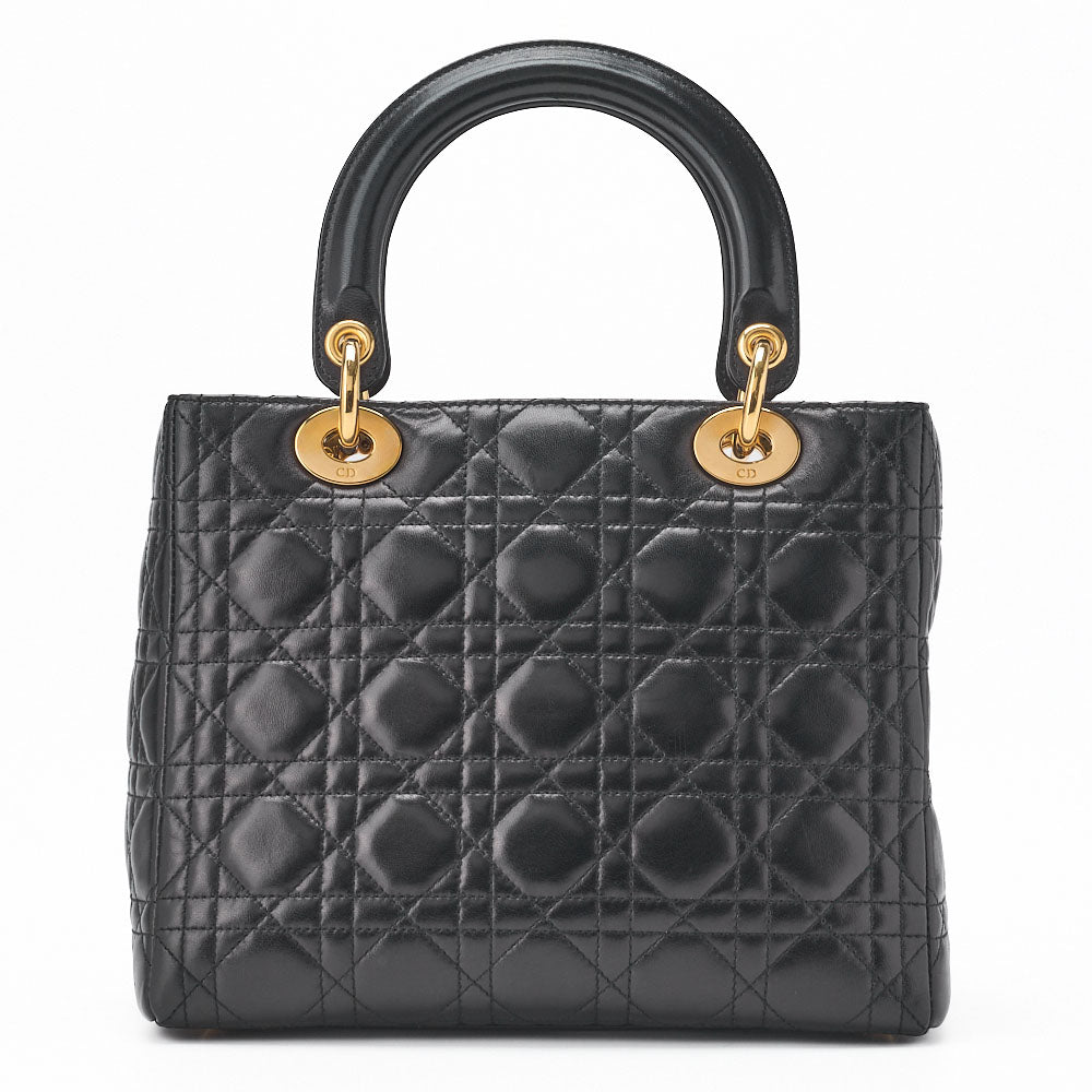Erleben Sie die zeitlose Eleganz der Dior Lady Dior Cannage Handtasche aus schwarzem Lammleder (Goldbeschläge) , eine atemberaubende Ergänzung für jede Damenkollektion. Diese exquisite Handtasche vereint Luxus mit Funktionalität und ist das perfekte Accessoire für legere und formelle Anlässe.