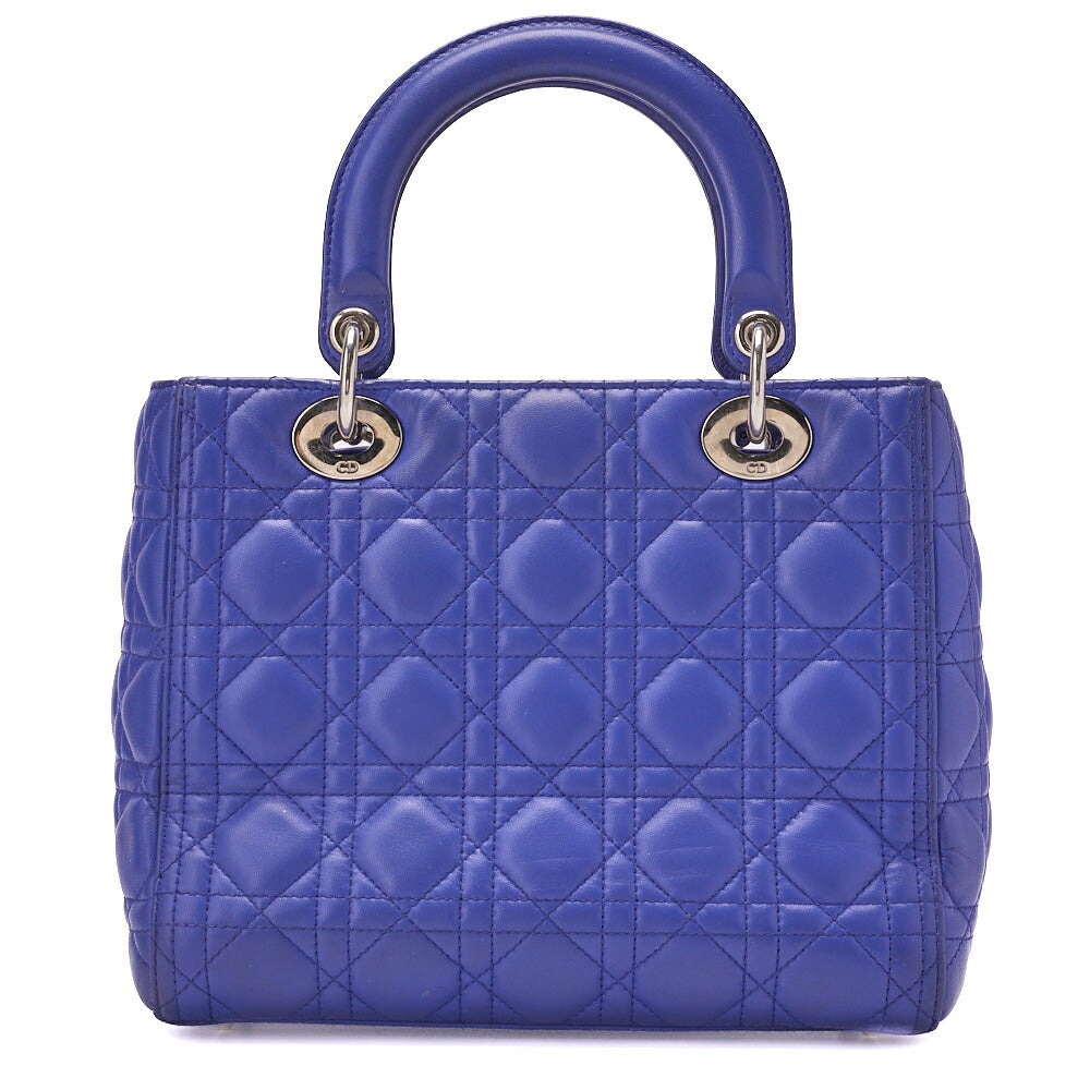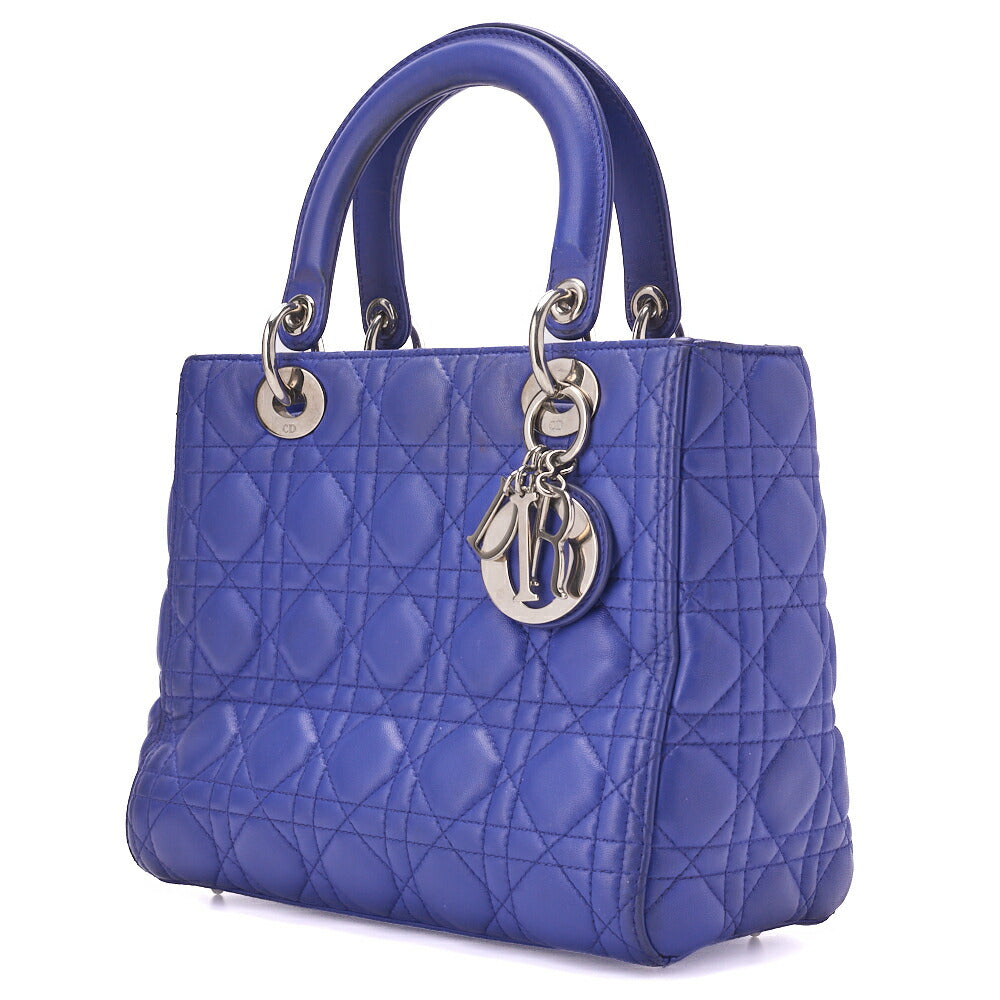 Gebrauchte Lady Cannage Handtasche Lammleder Blau Silberfarbene Hardware Gebraucht