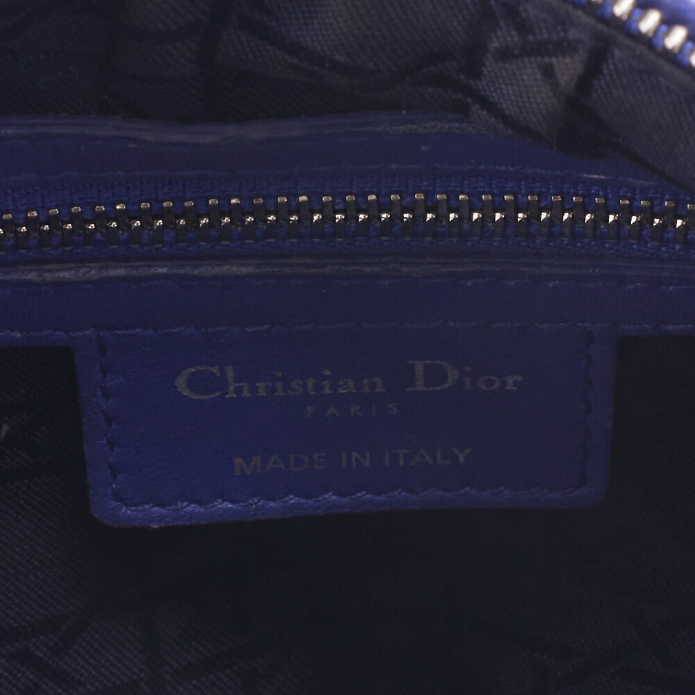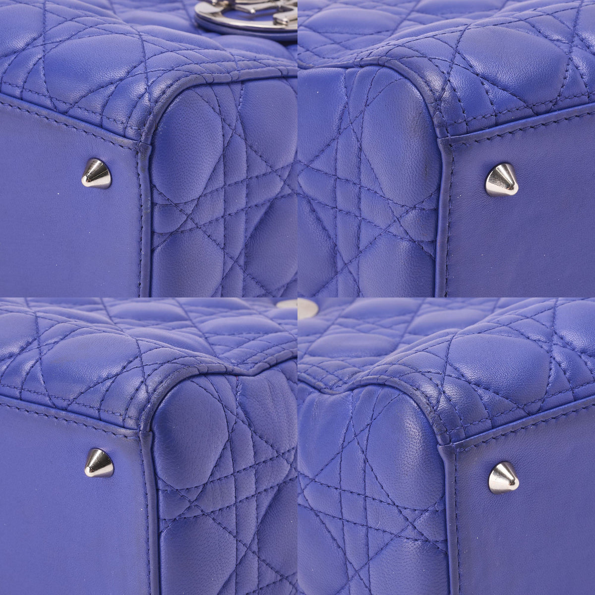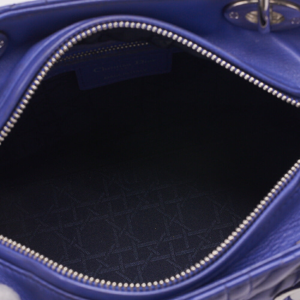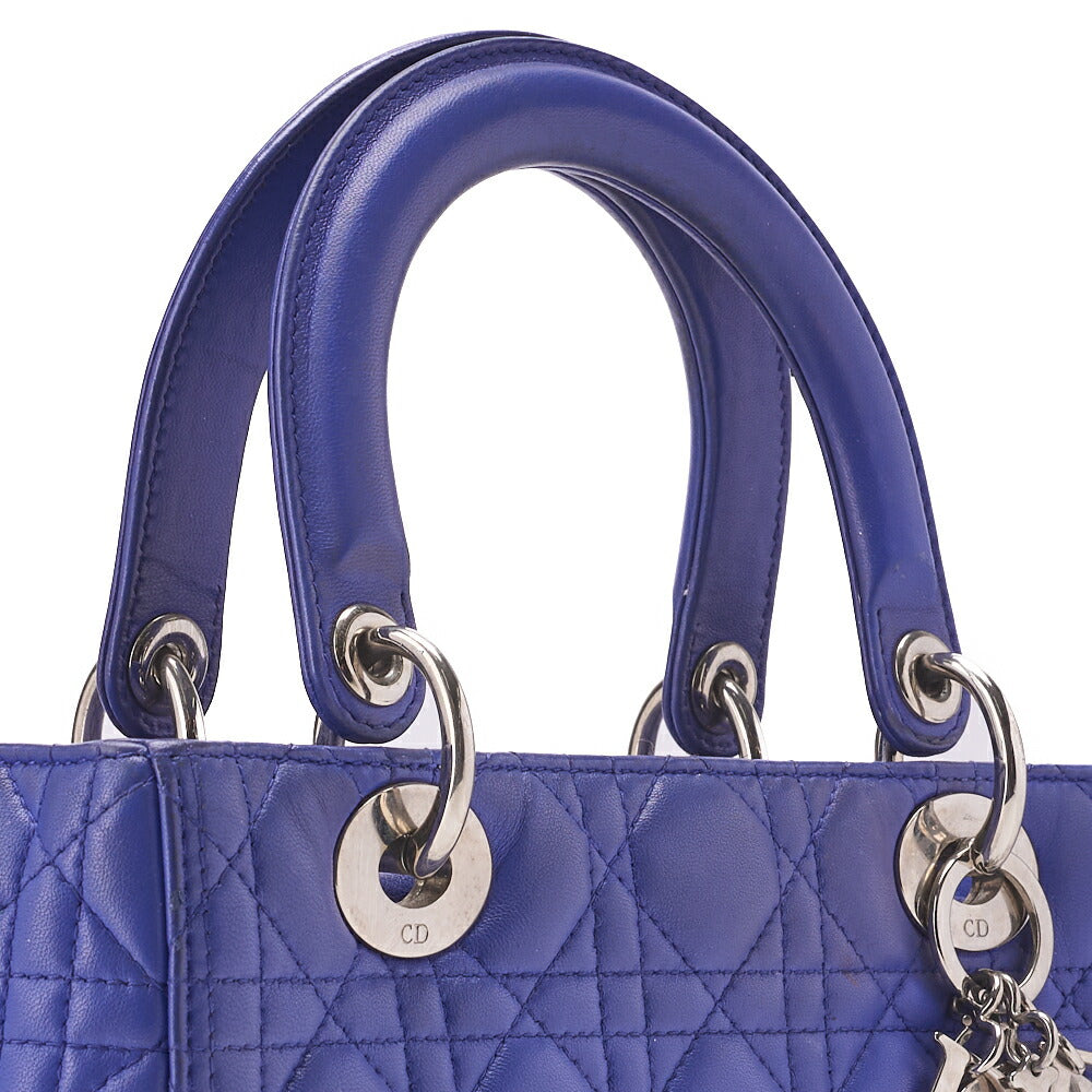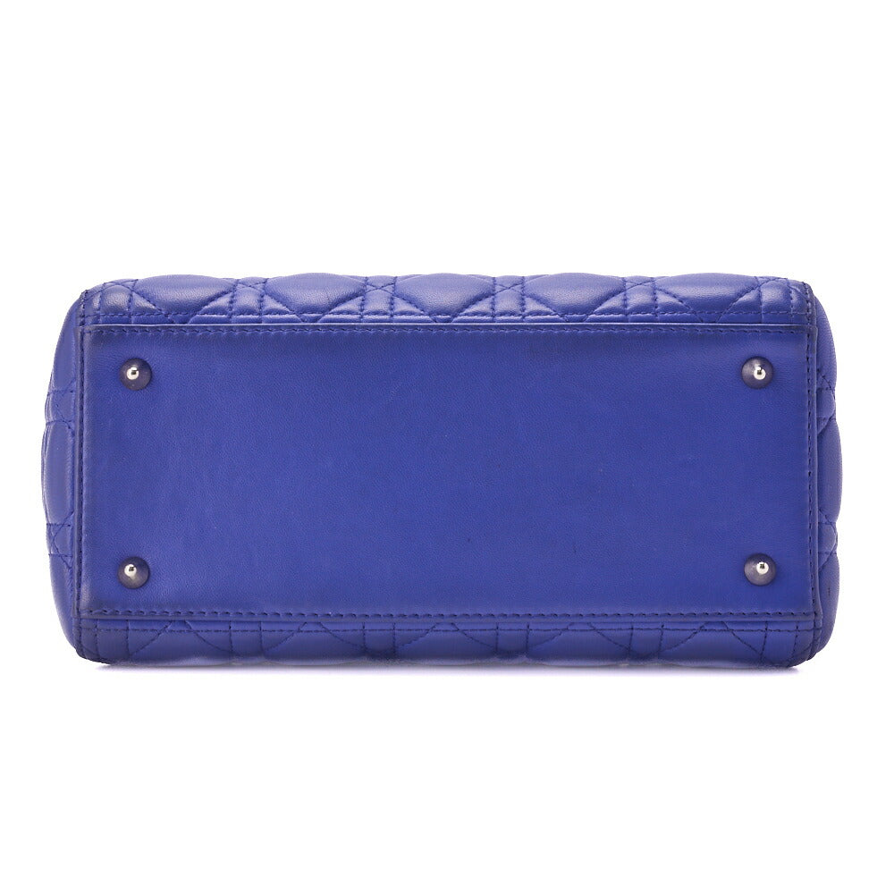 Erweitern Sie Ihre Accessoire-Kollektion mit der Dior Lady Dior Cannage Handtasche Lammleder blau (silberne Beschläge) , einem zeitlosen Schmuckstück, das Luxus und Funktionalität perfekt vereint. Diese exquisite Handtasche ist aus hochwertigem Lammleder gefertigt und bietet eine weiche, geschmeidige Textur, die sowohl langlebig als auch elegant ist.