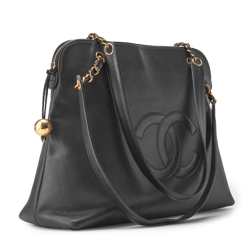 Veredeln Sie Ihren Stil mit der CHANEL Double Chain Schultertasche mit Kugelanhänger . Sie ist aus luxuriösem Kaviarleder gefertigt und mit dem ikonischen Coco-Logo verziert. Diese exquisite Tasche vereint Funktionalität und Eleganz und ist das perfekte Accessoire für jede modebewusste Frau.